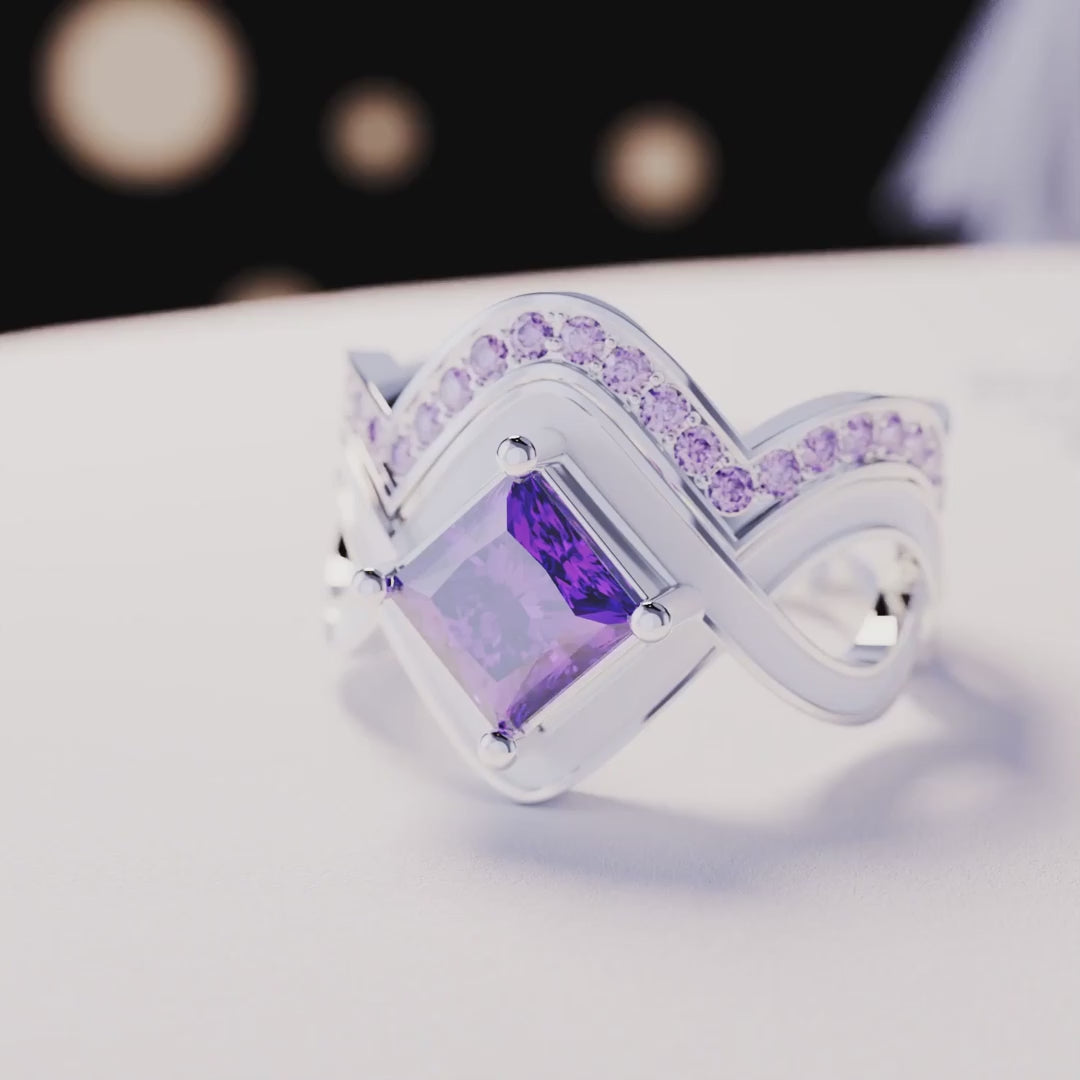 Save $90.00Violet Dream: Emerald-Cut Sculpted Ring - S925 Sterling Silver