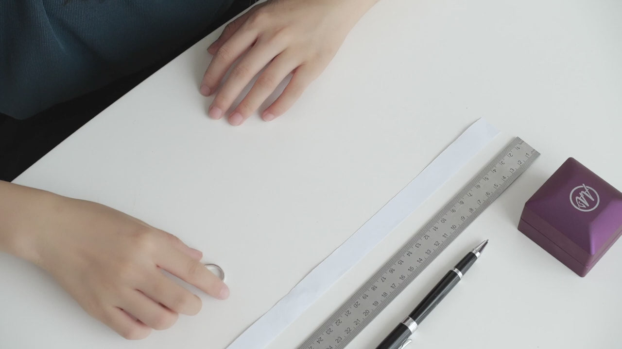 - Cut a strip of paper or a piece of string. Wrap the paper or string around the finger to be sized.