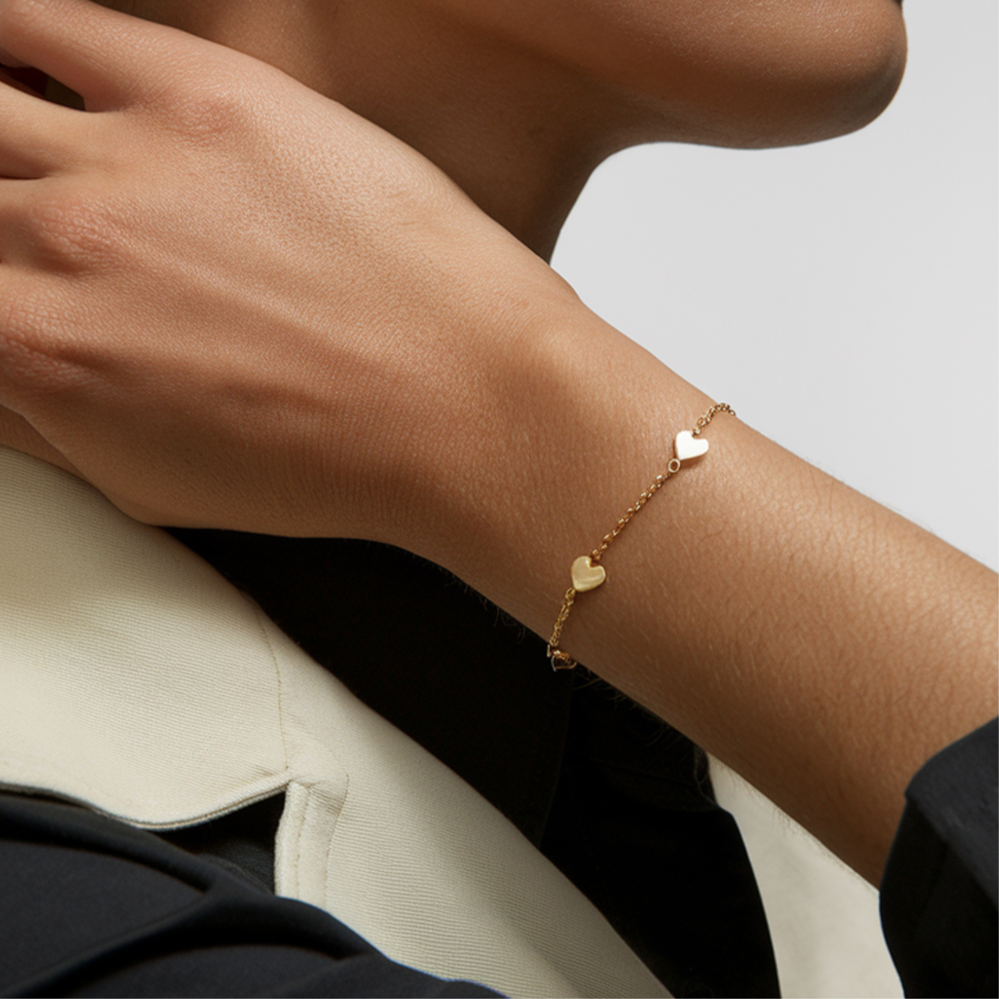 Add a touch of romance to your everyday look with the Delicate Heart Station Bracelet. Featuring polished heart charms evenly spaced on a sleek link chain, this bracelet exudes charm and simplicity. Available in stainless steel with 18K gold or S925 plating, or for a more luxurious option, choose 14K or 18K solid gold or white gold.