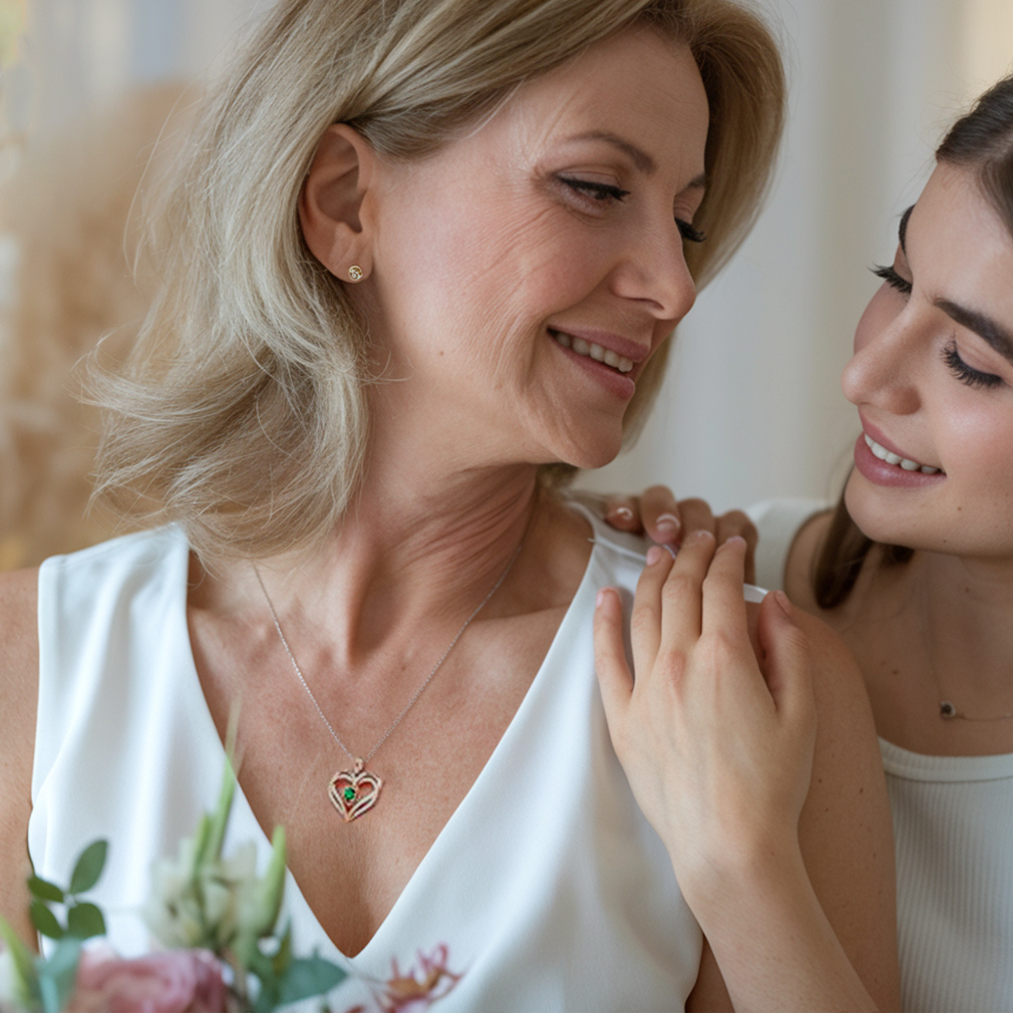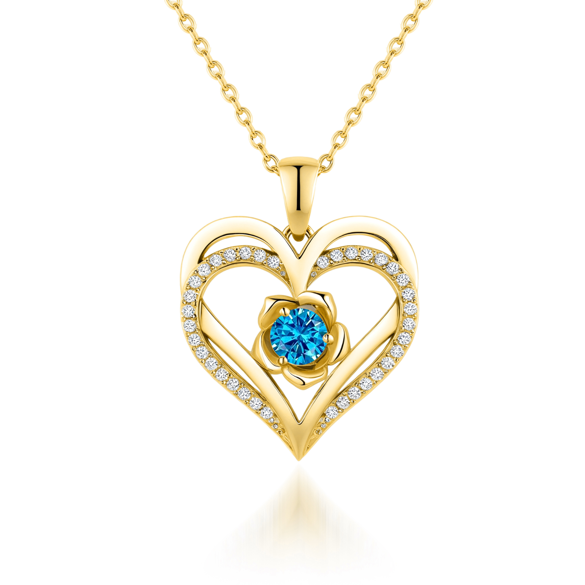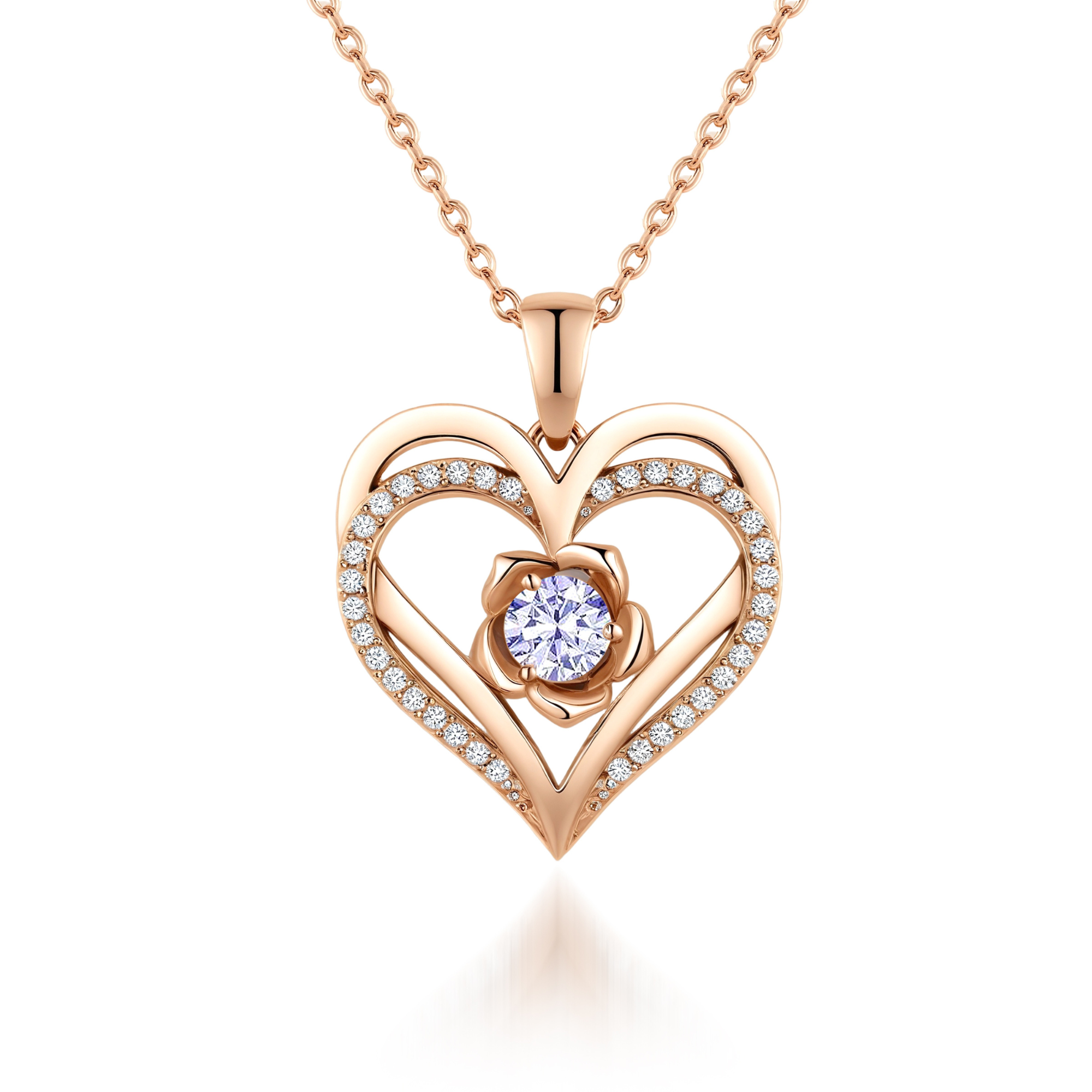 Flower Heart Birthstone Necklace Pendant