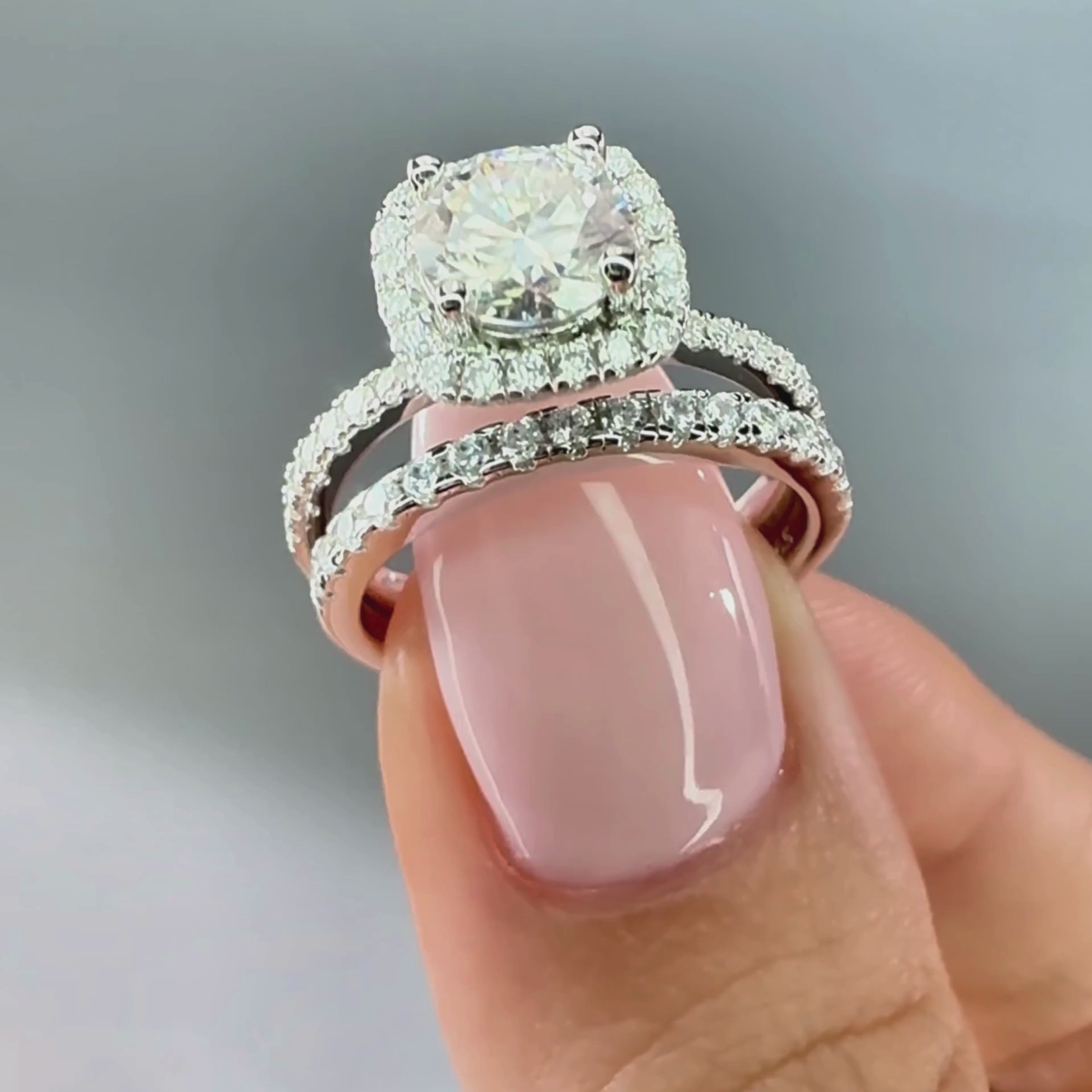 The Forevermore, one of our best-selling styles, embodies timeless elegance with its classic full-eternity double band ring set halo design.