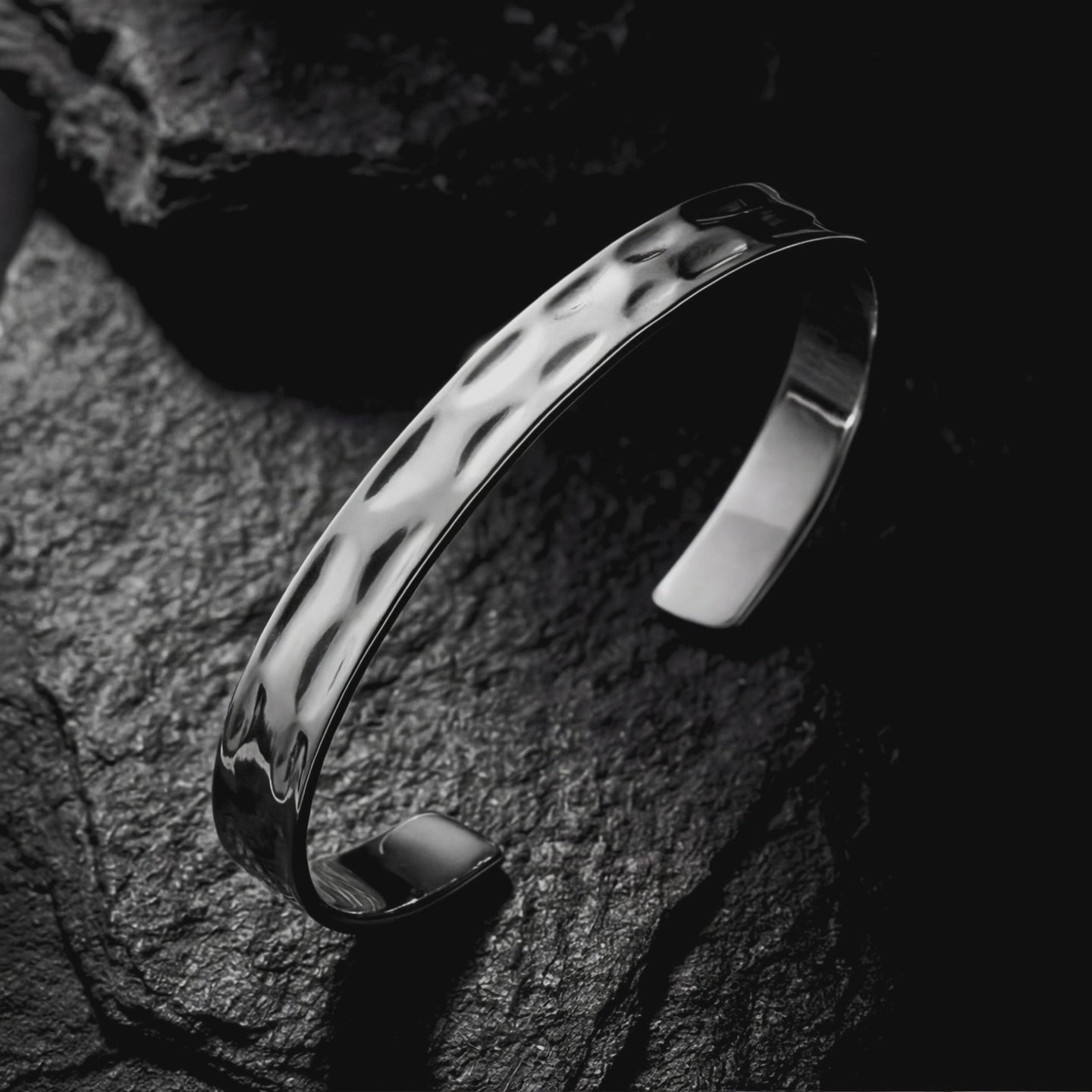 Hammered Edge Bangle - Silver