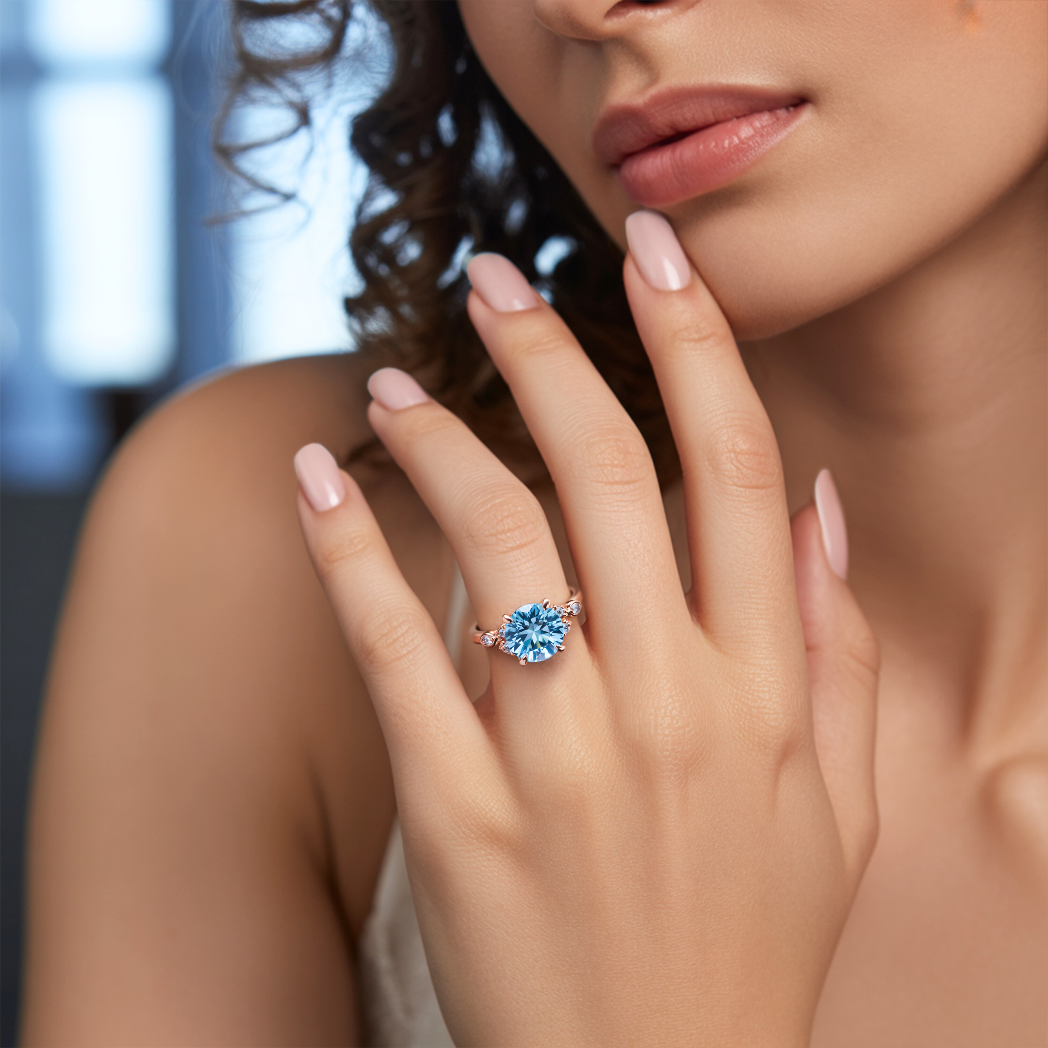 The Katalina 4CT Vintage Blue Round Cut Moissanite Ring – Command Unforgettable Attention