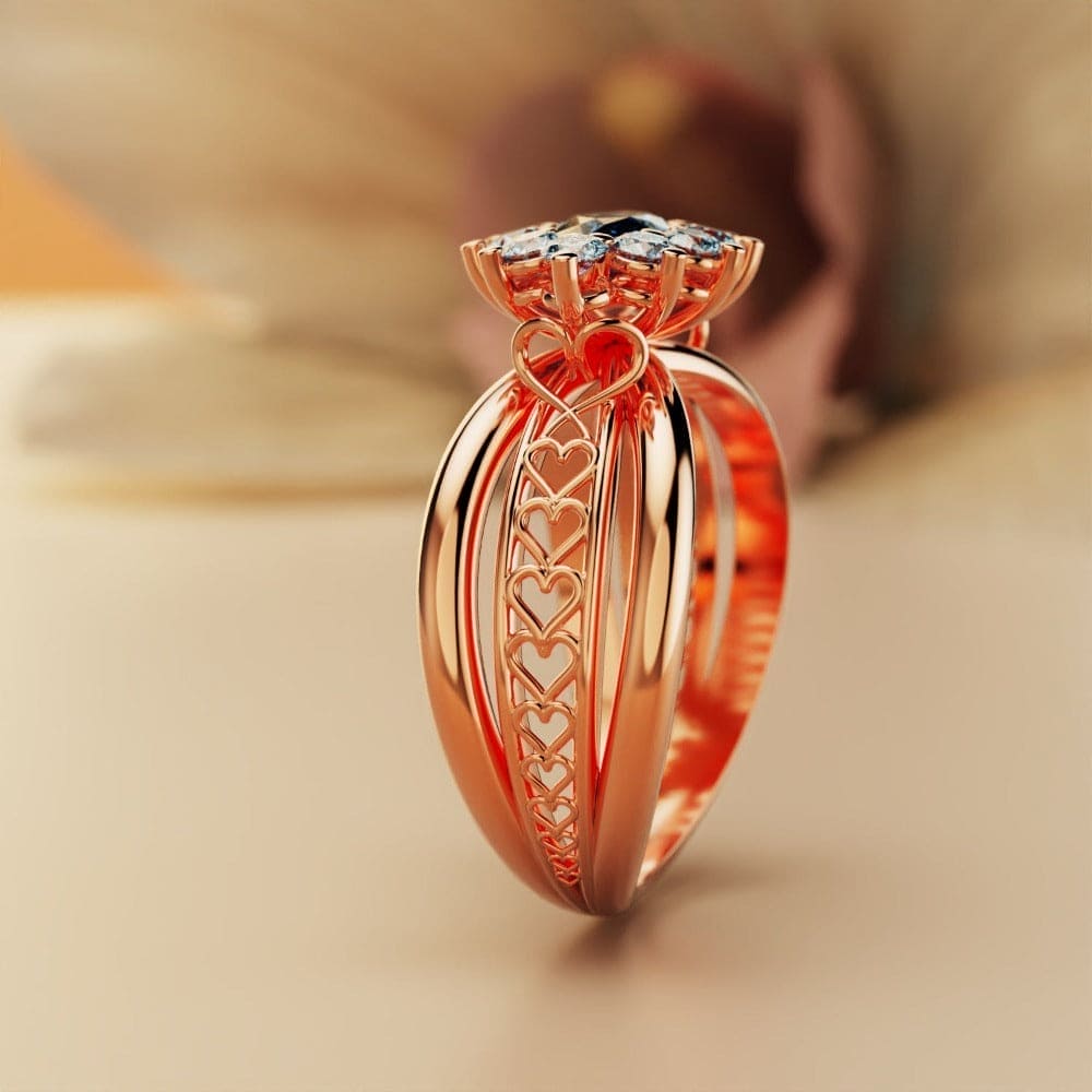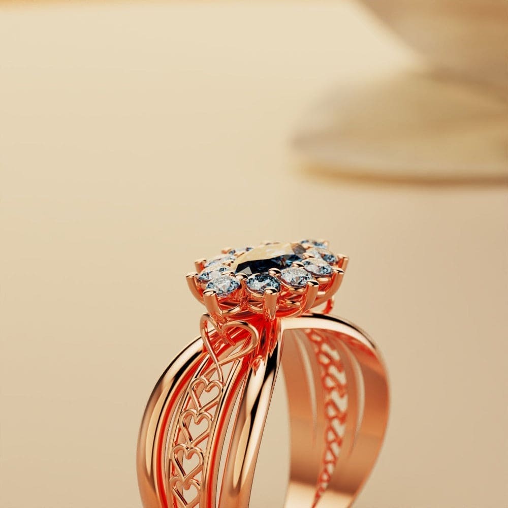 Step into elegance with a purpose with the Marquise Brilliance: Rose Gold Gem Cluster Elegance Ring. A signature design by Awareness Avenue. This ring from our original design collections is a testament to beauty and luxury. Each purchase is a stand against the blood diamond crisis by directly supporting Diamonds For Peace.