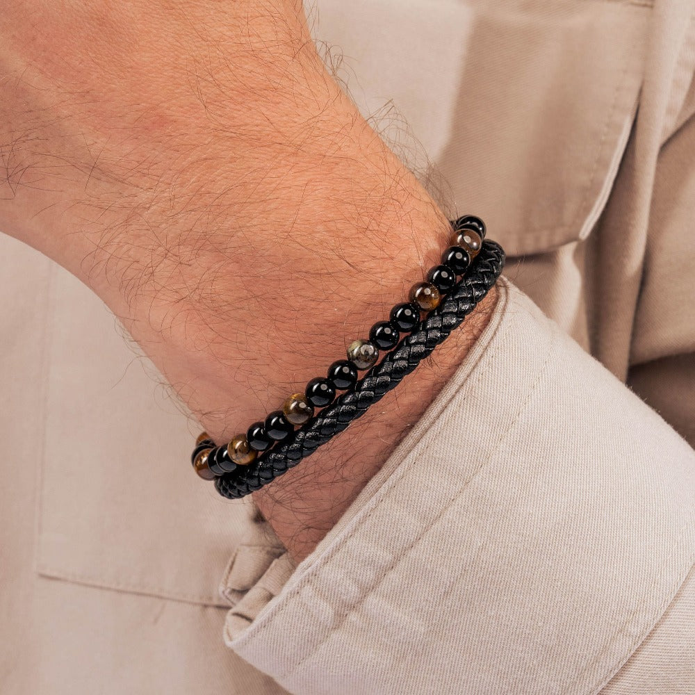 - Materials: High-quality steel beads with layered platinum and premium braided leather.