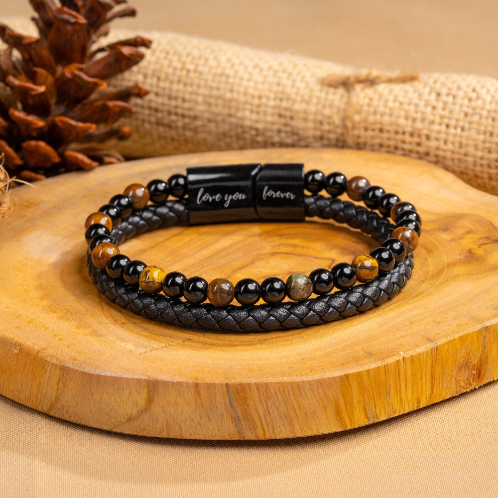 Men's 'Love You Forever' Beaded Leather Bracelet