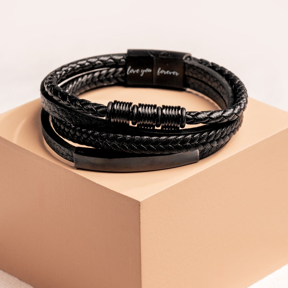Looking for a heartfelt Valentine's gift for Dad? Celebrate an unbreakable bond with this sleek and meaningful men's bracelet. Crafted with high-quality braided leather and stainless steel accents, it’s engraved with “Love You Forever” as a lasting reminder of your love and support. Whether for Valentine's Day or just to show your appreciation, this bracelet is a timeless gift he’ll cherish.