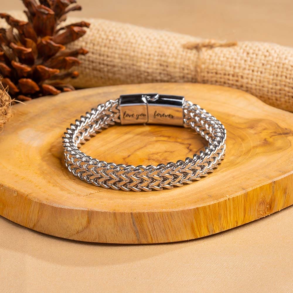 Show your unwavering love this Valentine's Day with a meaningful Valentine's gift for Dad. This sleek and timeless men's bracelet is crafted from durable stainless steel with a polished, tarnish-resistant finish. Engraved with “Love You Forever,” it’s a lasting symbol of your love and pride. Whether for Valentine's Day or another special occasion, this chain bracelet is a keepsake he’ll treasure forever.