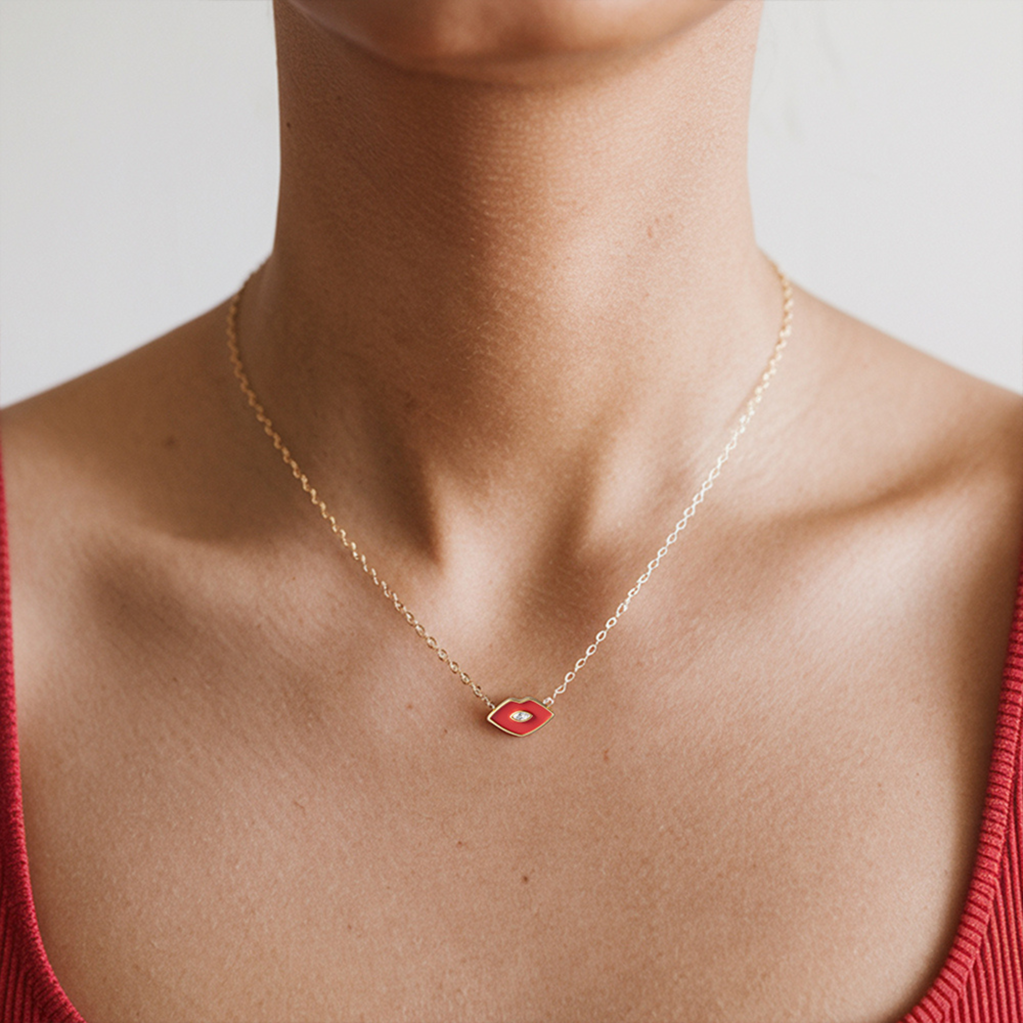 Add a bold and playful touch to your look with the Octavian Kiss Diamond Necklace. Featuring a unique lips-shaped pendant crafted from hypoallergenic enamel and set with a dazzling 0.3CT lab-grown marquise-cut diamond simulant, this piece is perfect for anyone who loves distinctive and stylish jewelry.