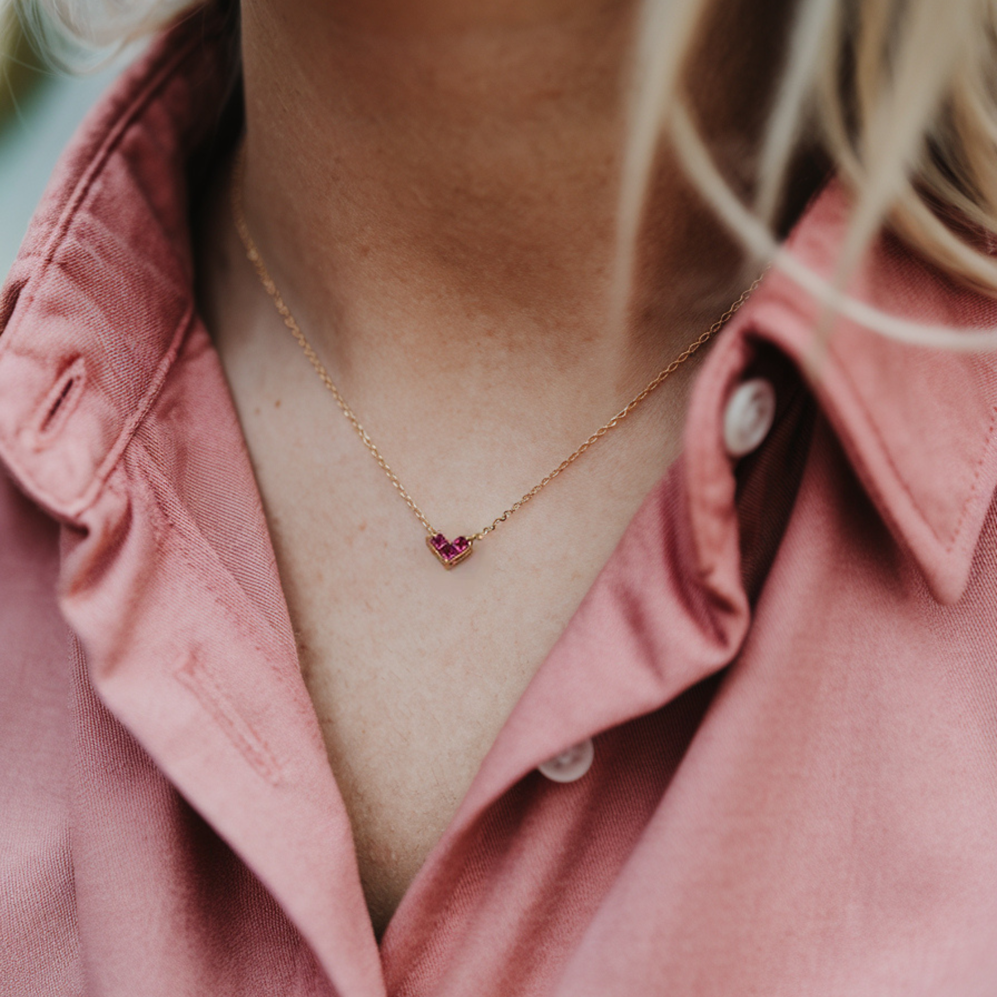 Pink Heart Cut Gold Pendant Necklace