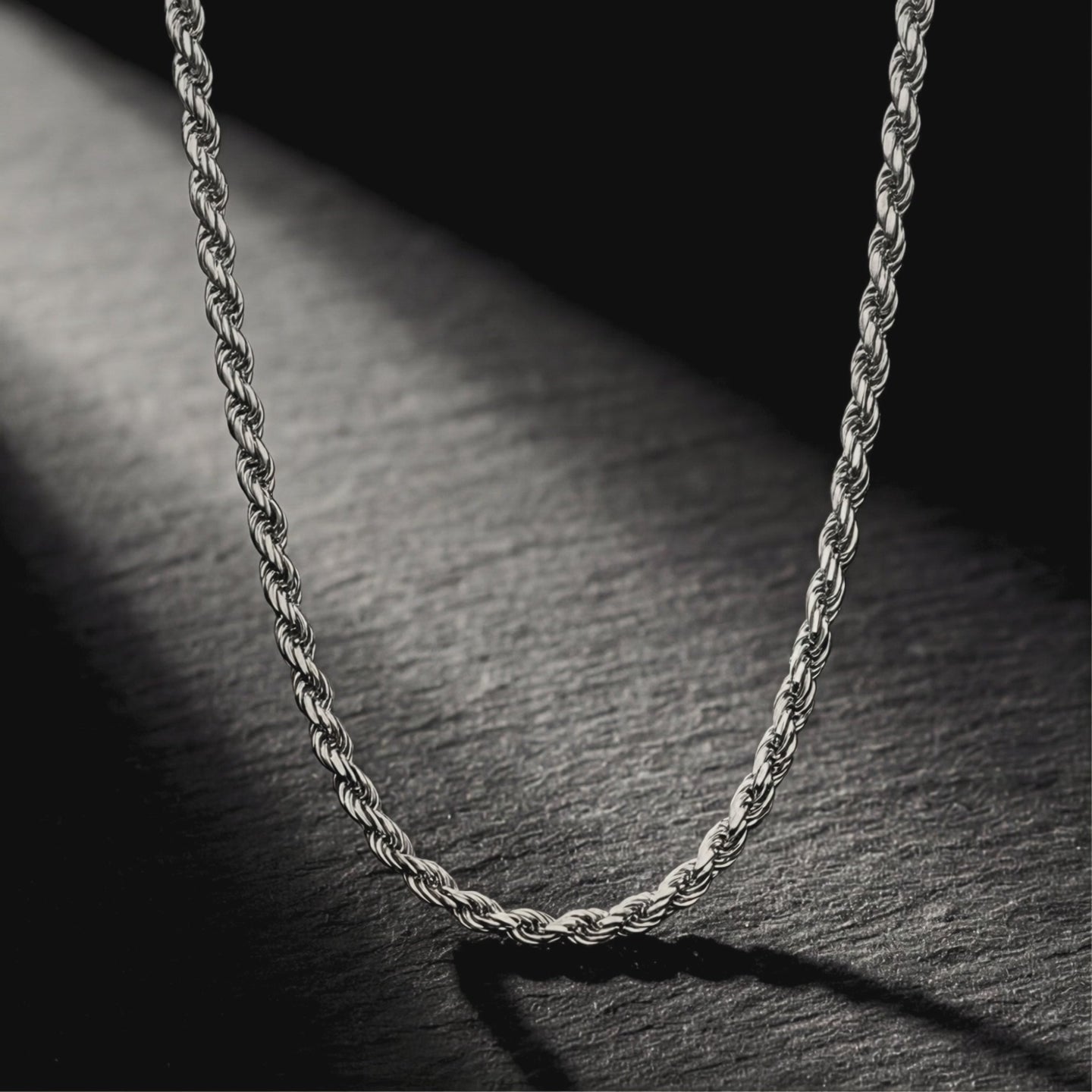 Looking for a durable, everyday chain that won't break the bank? Our Silver Rope Chain is engineered from premium 316L stainless steel, the same material trusted by luxury watchmakers. This chain is waterproof, tarnish-proof, and built to last. Wear it in the shower, at the gym, or out on the town—it's designed for daily wear without the worry.