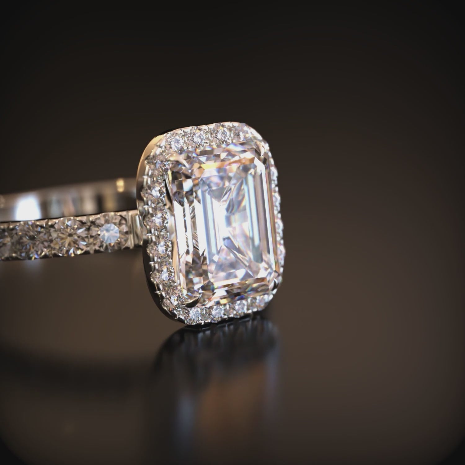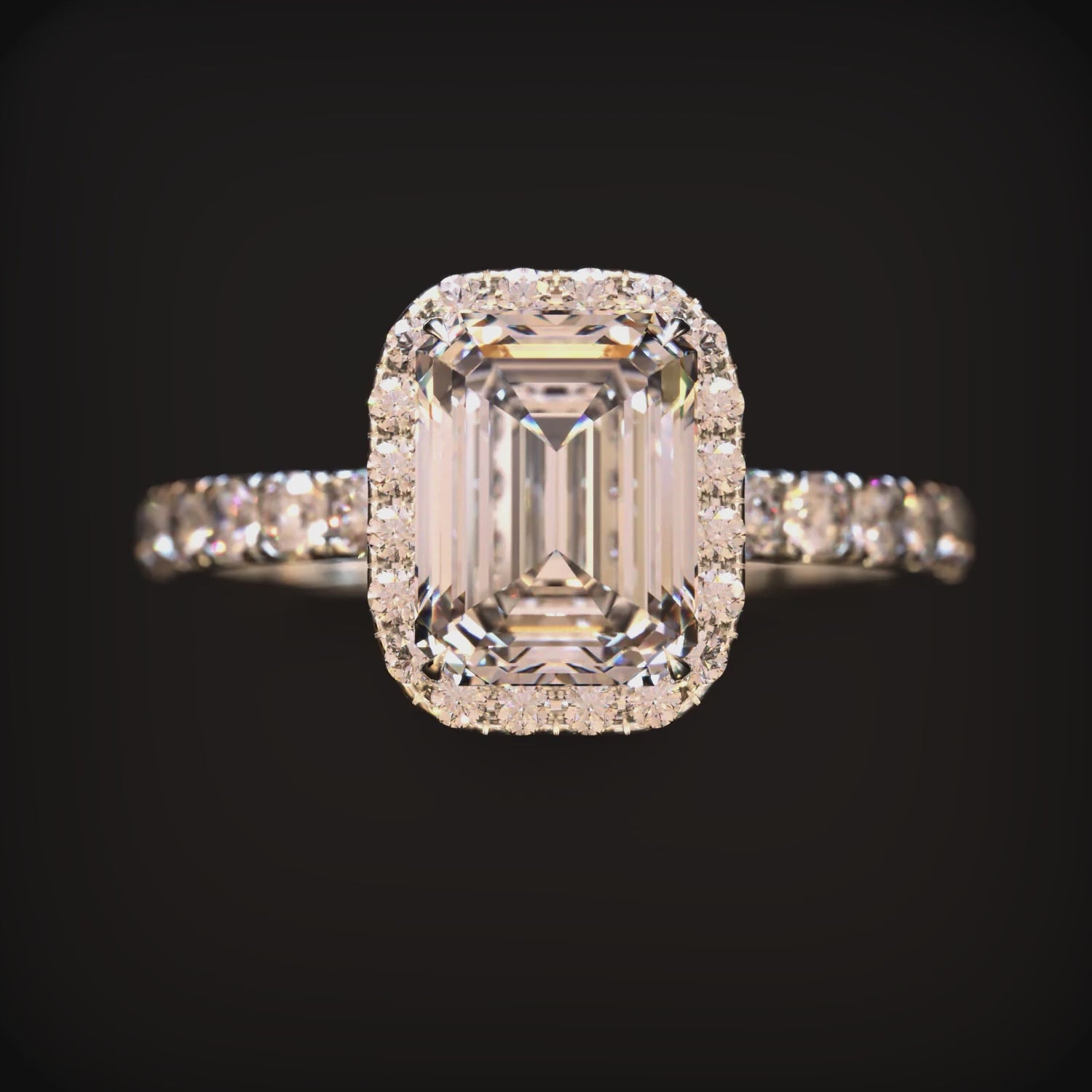 The Rosalind Claire 2CT Emerald Cut Halo Moissanite Ring