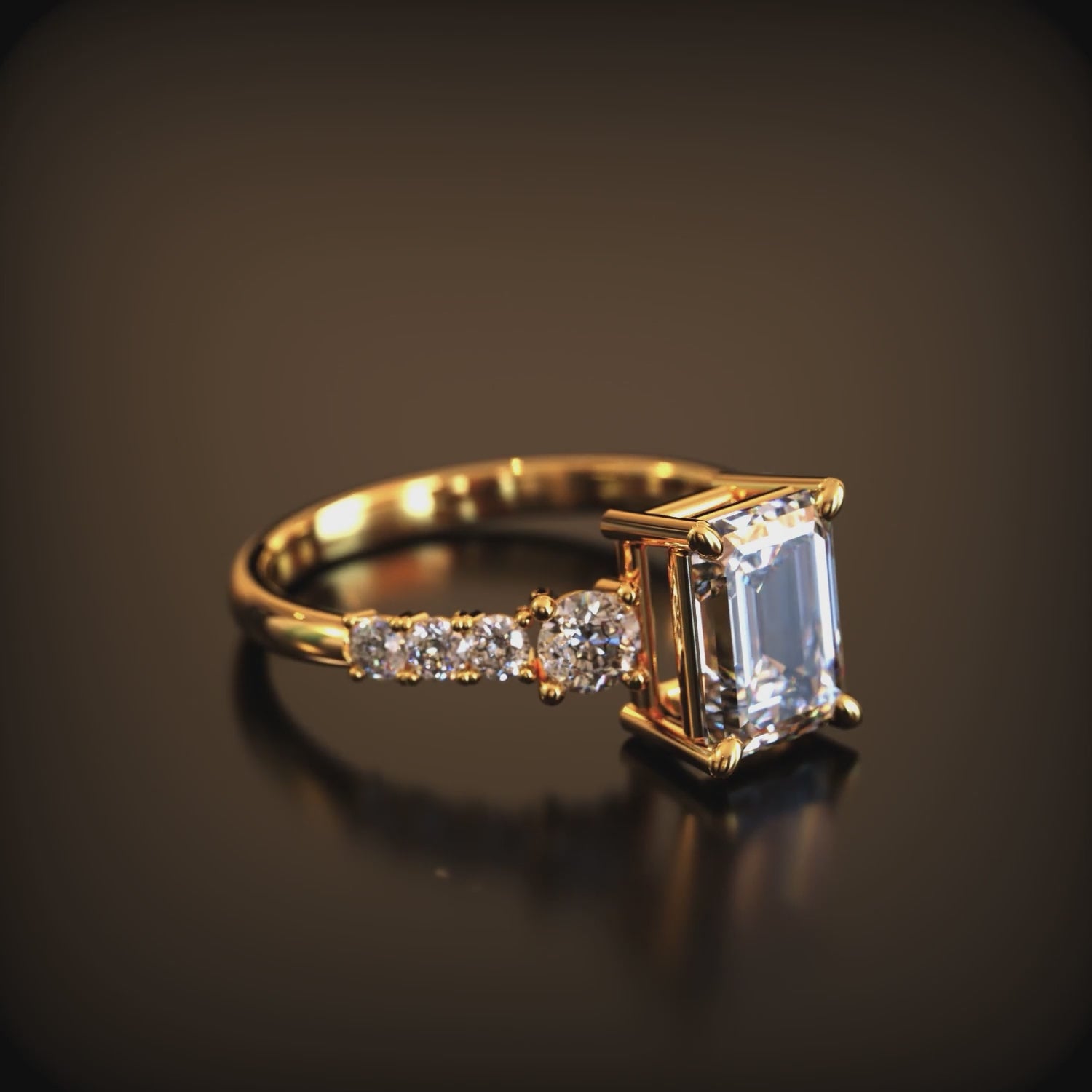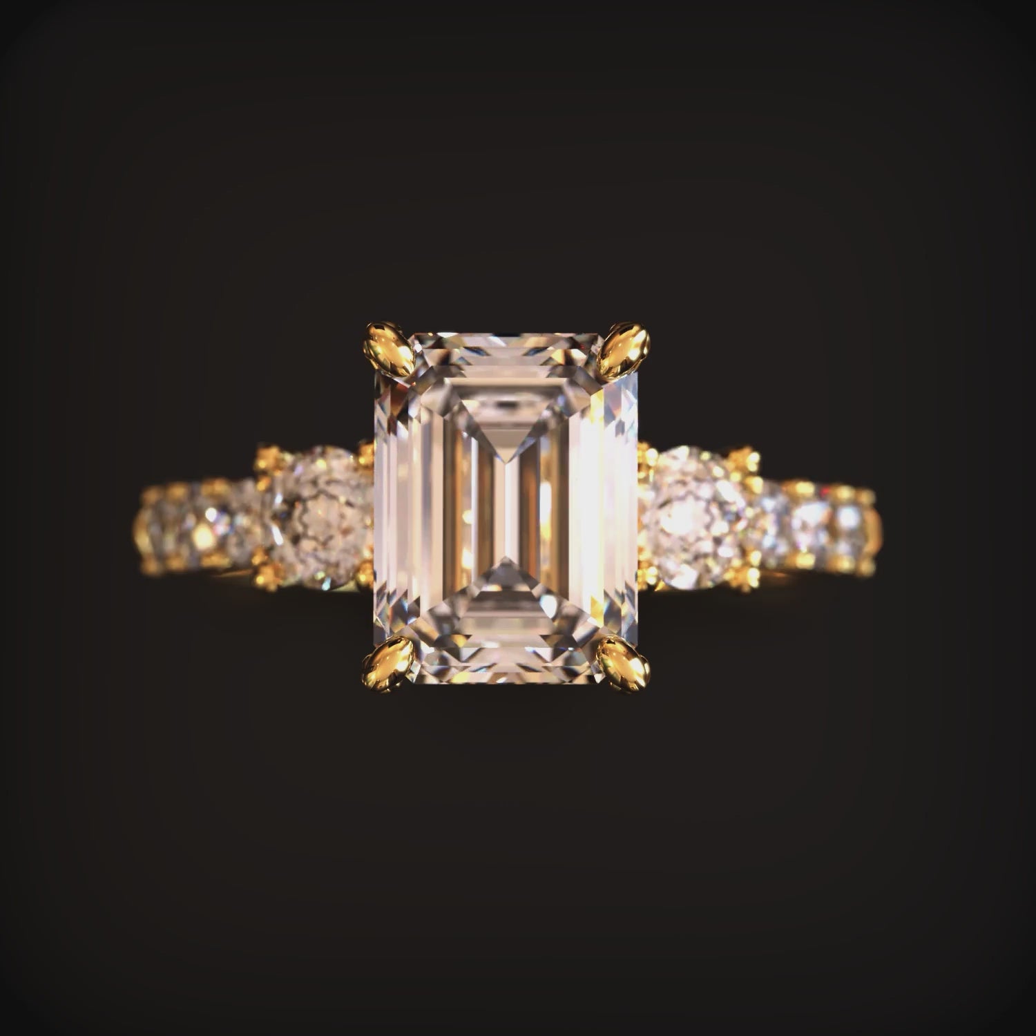- The Nova Elise 2CT Emerald-Cut Moissanite Ring with a dazzling, diamond-like brilliance