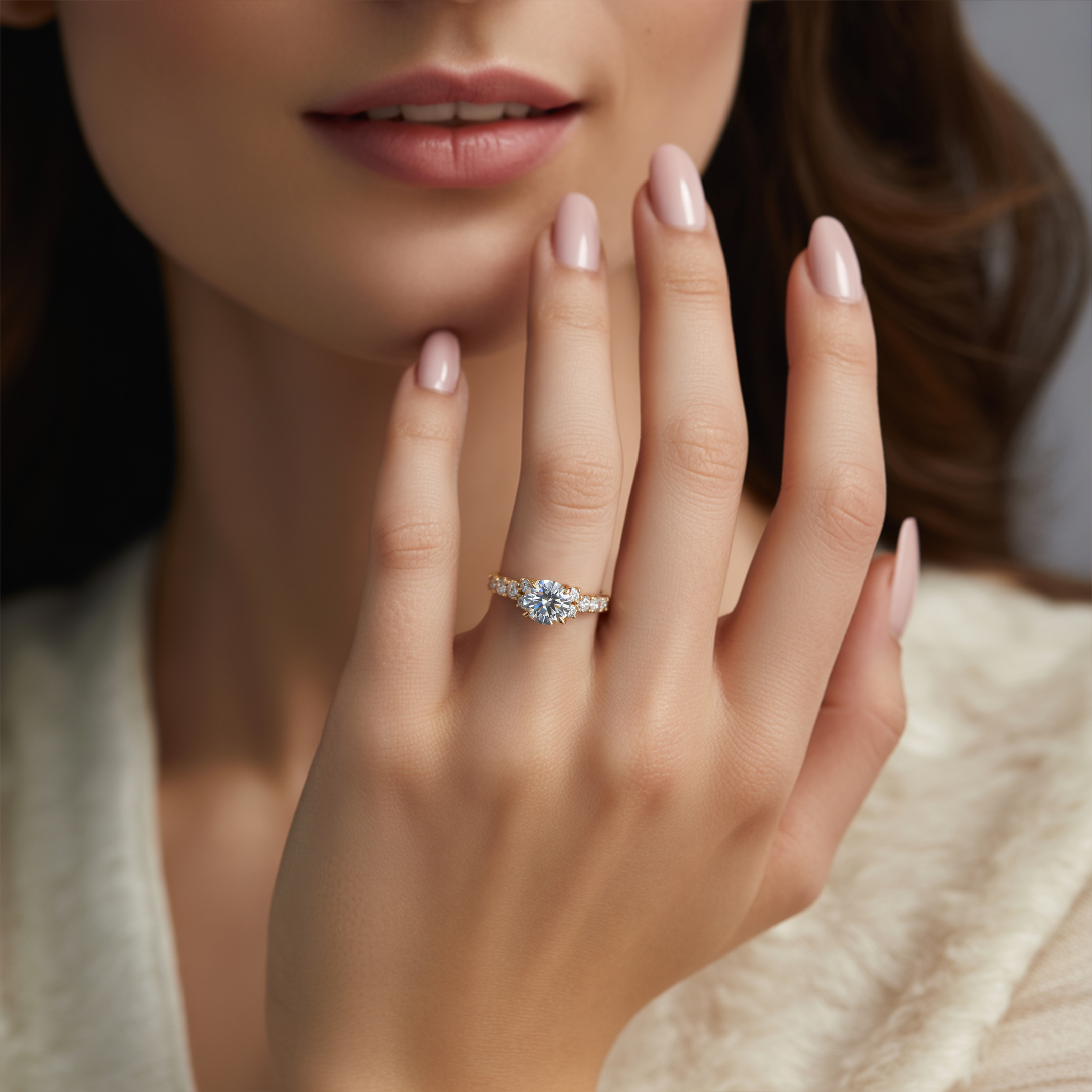 The Adelina Rae features a brilliant round-cut moissanite that captures and reflects light from every angle. It’s known for its incredible sparkle, outshining even the finest diamonds. This ring feels both luxurious and totally attainable.