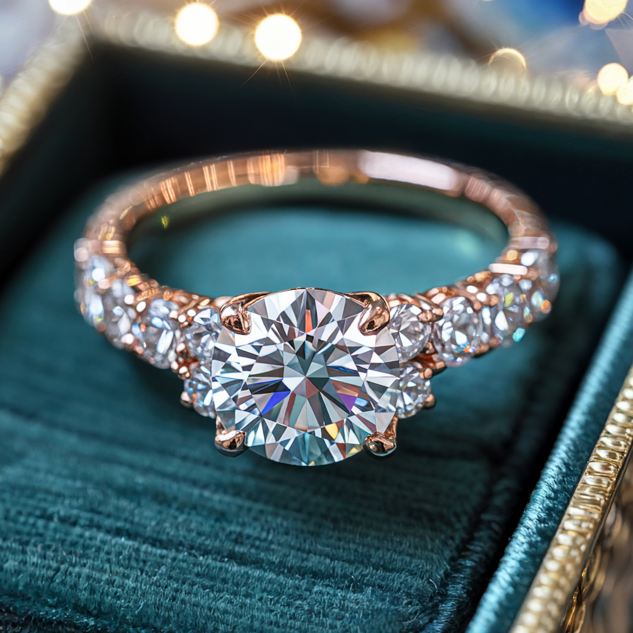 - Ultimate Sparkle: A 2 CT round-cut moissanite that delivers incredible brilliance and fire.