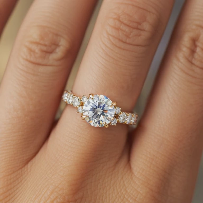 Get ready for some serious compliments with The Adelina Rae Round Cut Moissanite Ring. This isn't just a ring; it's a showstopper that will genuinely blow people away, without blowing your bank account.
