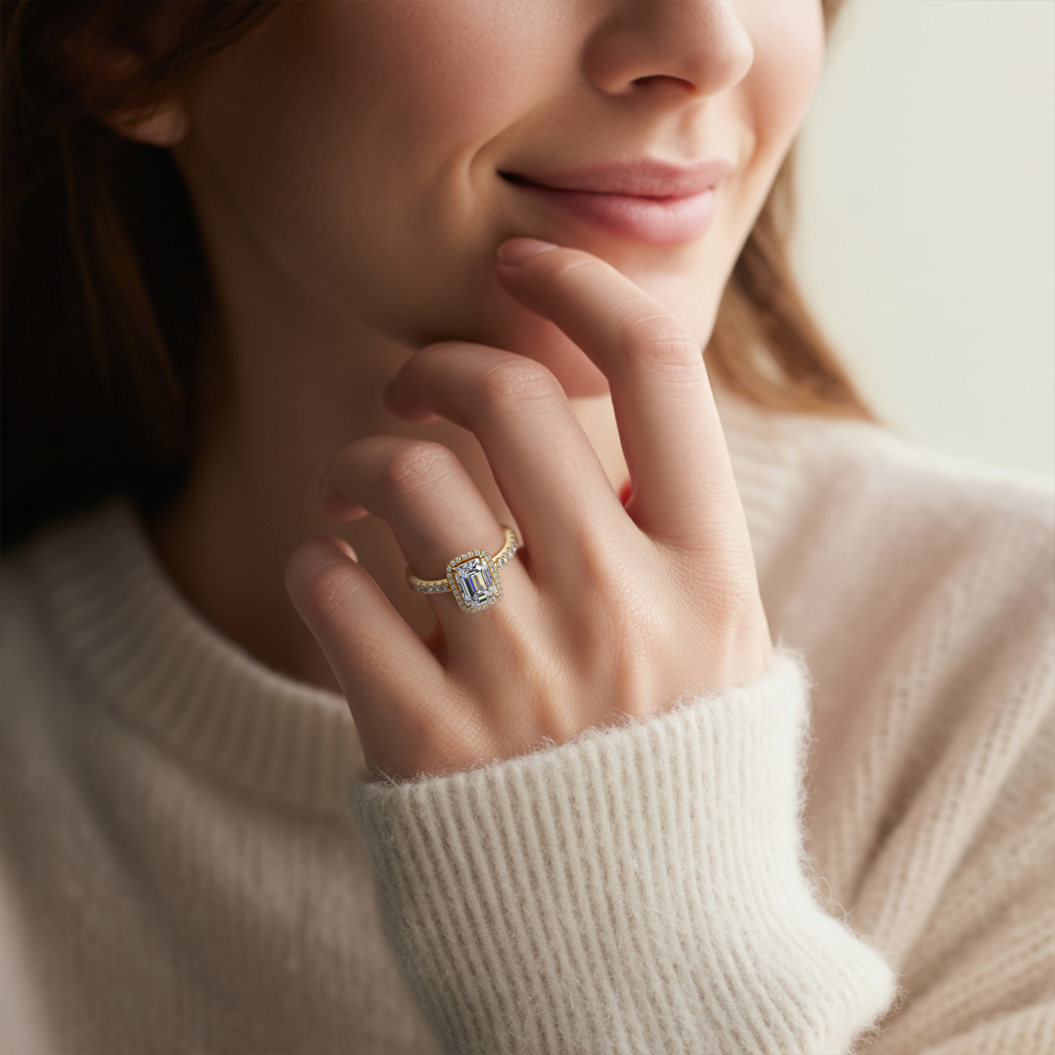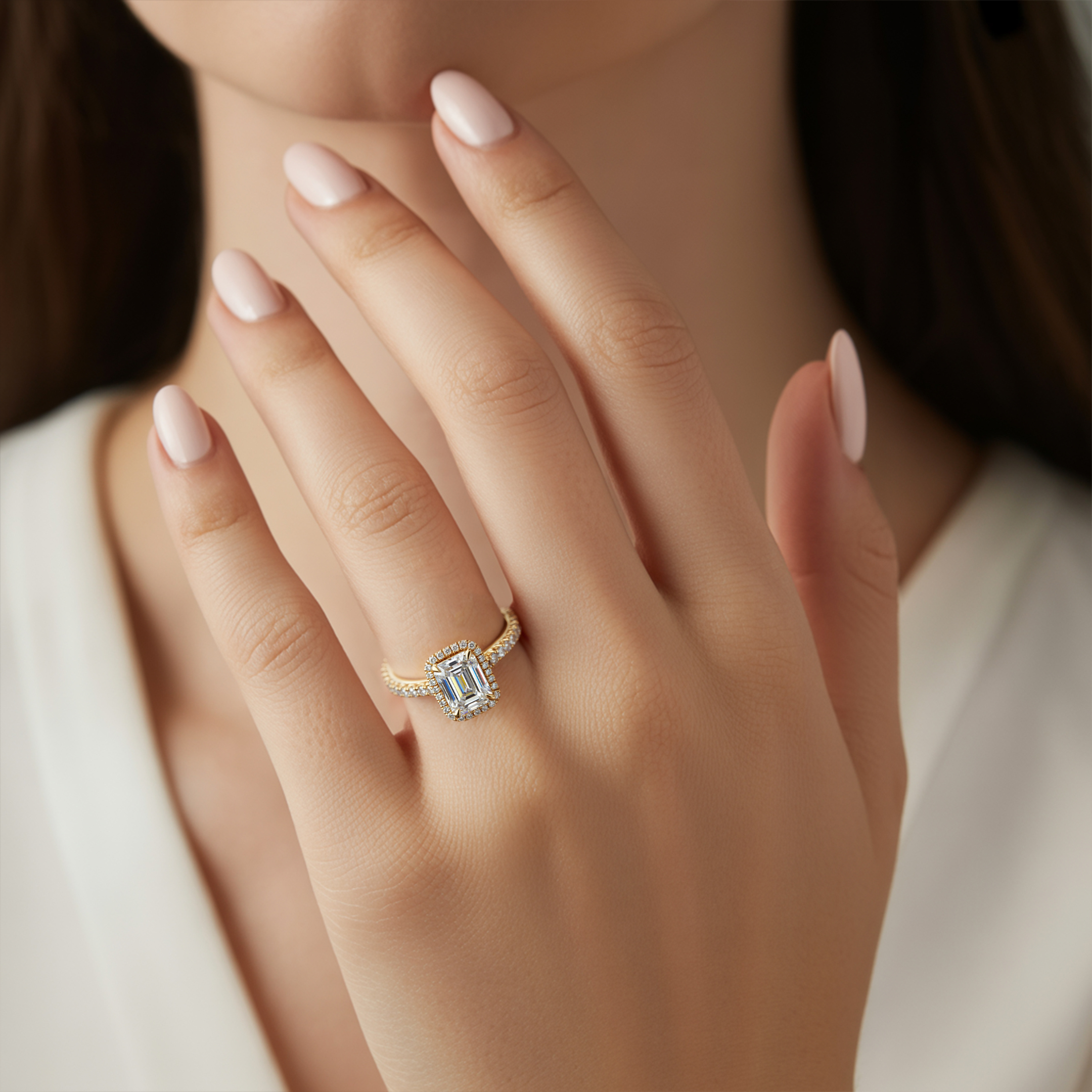 What outsparkles any diamond? The Adelina Rae Emerald Cut Moissanite Ring. Say hello to The Adelina Rae, a ring that radiates light, outsparkling even the finest diamonds. With breathtaking emerald-cut moissanite that captures the light like no other, this ring is both luxurious and affordable.