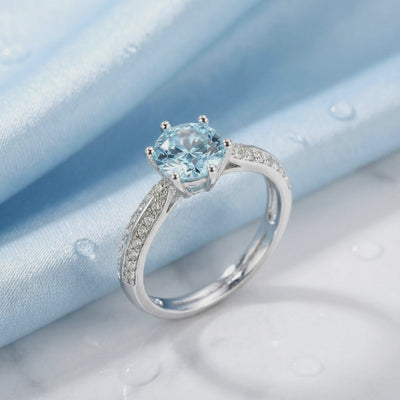 Mined aquamarine is often too pale or clouded with inclusions. The Adeline Solitaire features Simulated Aquamarine, color-calibrated to achieve the absolute ideal light blue saturation. Precision-cut from A5 Grade material, this stone is engineered for maximum light return and the exact visual physics of a museum-grade heirloom.