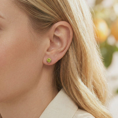 Mined peridot is often plagued by brown undertones and visible inclusions. These earrings feature Simulated Peridot, engineered to achieve the absolute ideal: a vibrant yellow-green with lively brilliance and museum-grade clarity. Each stone is color-calibrated to match the most coveted specimens found in high-end heritage collections.