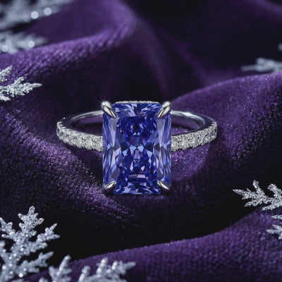 Mined tanzanite is notoriously inconsistent. Most natural stones are either too pale or contain inclusions that kill the sparkle. We engineered the alternative. This simulated tanzanite ring is color-calibrated to match the coveted deep blue-violet of museum-grade tanzanite, capturing the precise trichroic shifting hues found in the world's top 1% of stones.