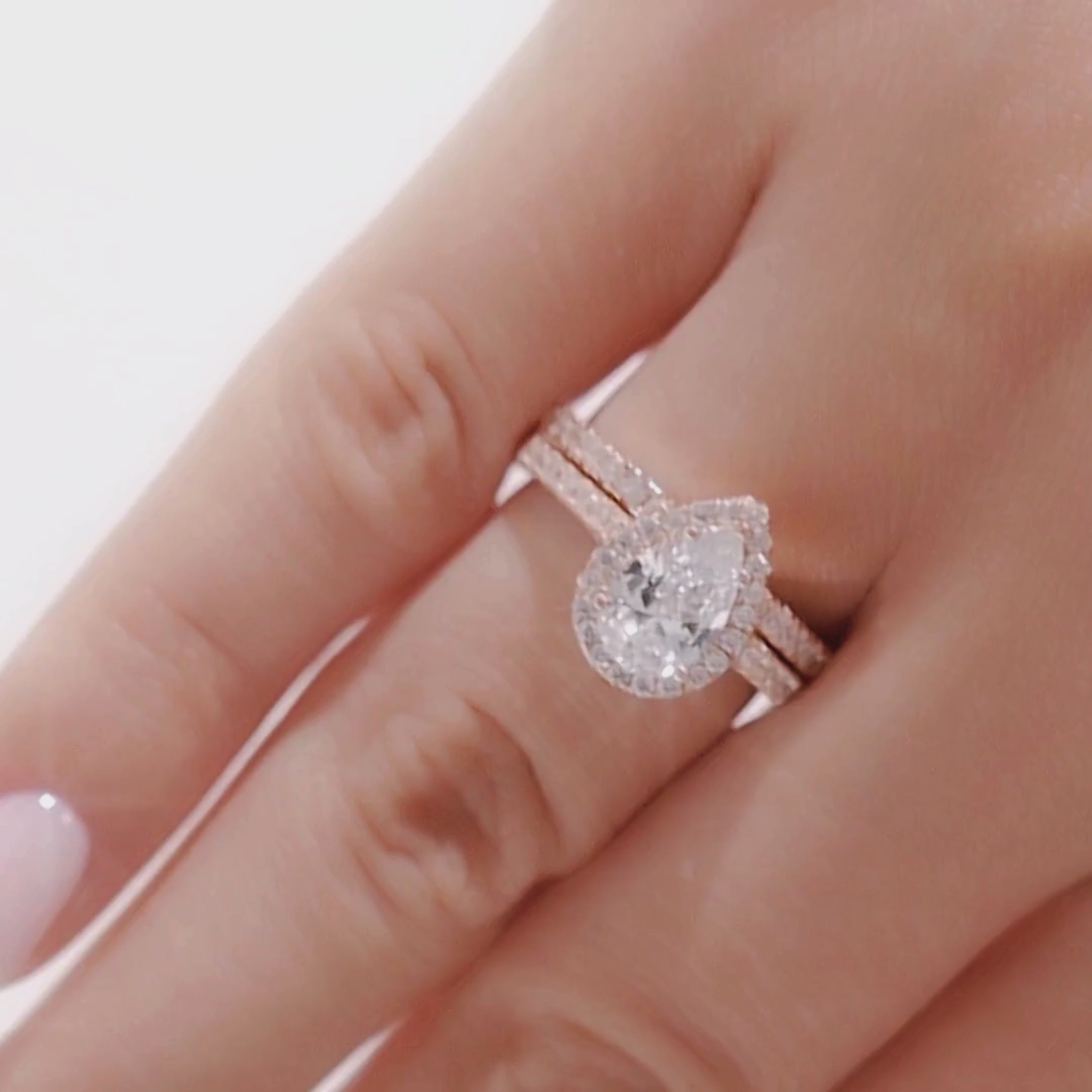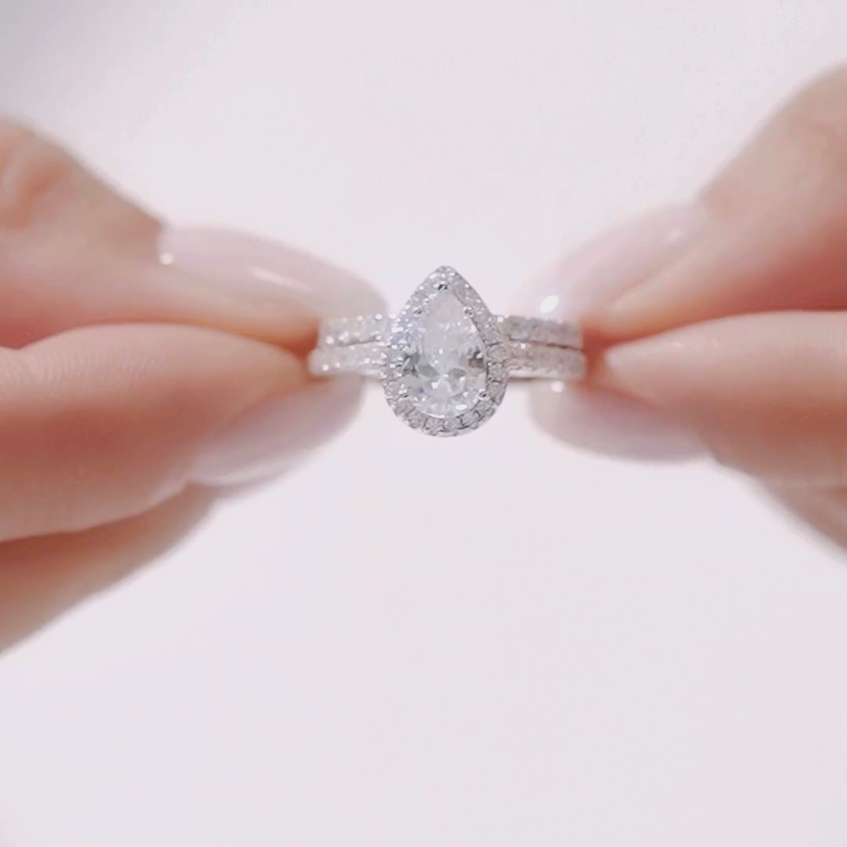 The Allure dazzles with its classic double band half-eternity halo design. Made from S925 sterling silver, it features a pear-cut center lab grown diamond and side stones in prong and channel settings. The light will bounce and sparkle from this ring from every angle.