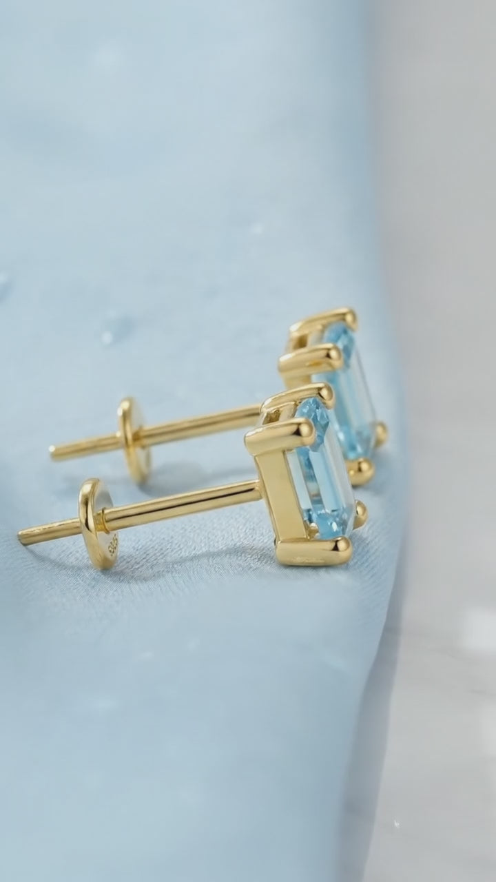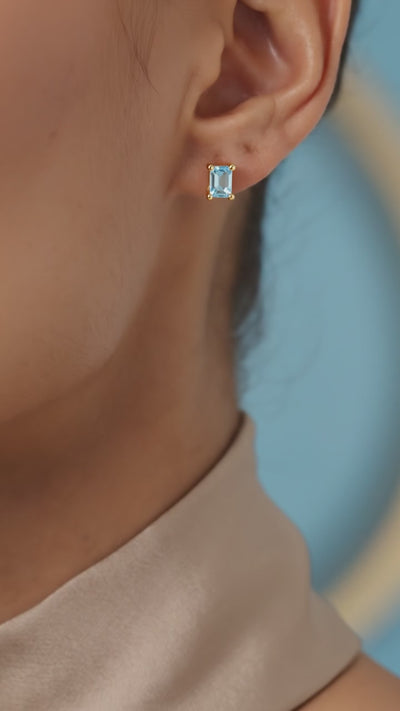 Built for daily endurance, these earrings feature a low-profile setting in Solid 925 Sterling Silver finished with a thick layer of 18K Gold Vermeil. Unlike fragile glass crystals, our Simulated Aquamarine is color-calibrated for life. They won't fade, they won't scratch easily, and they won't lose their fire when exposed to the elements of your daily routine.