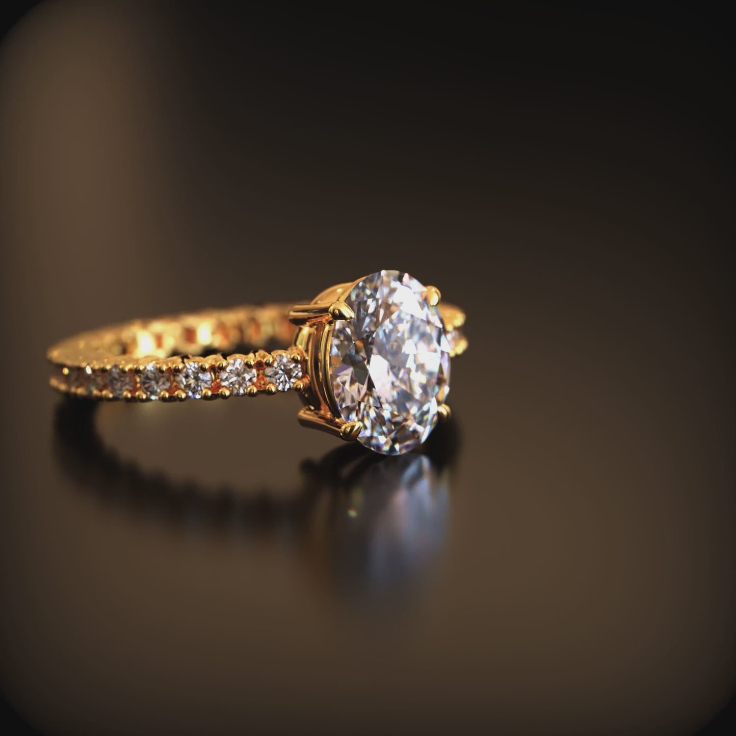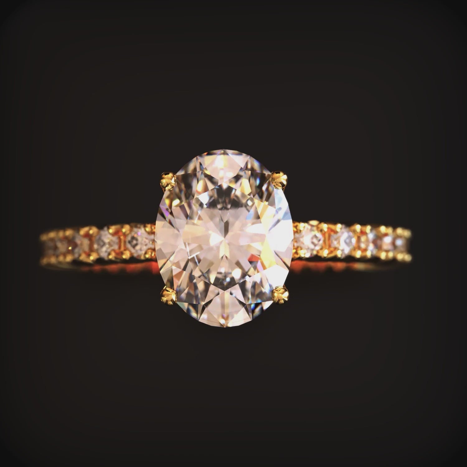- CT Size: The Amorette Features a 2CT Oval Cut Moissanite. We accept custom requests if you wish for a different CT size. Check the details above for specifics on this ring.