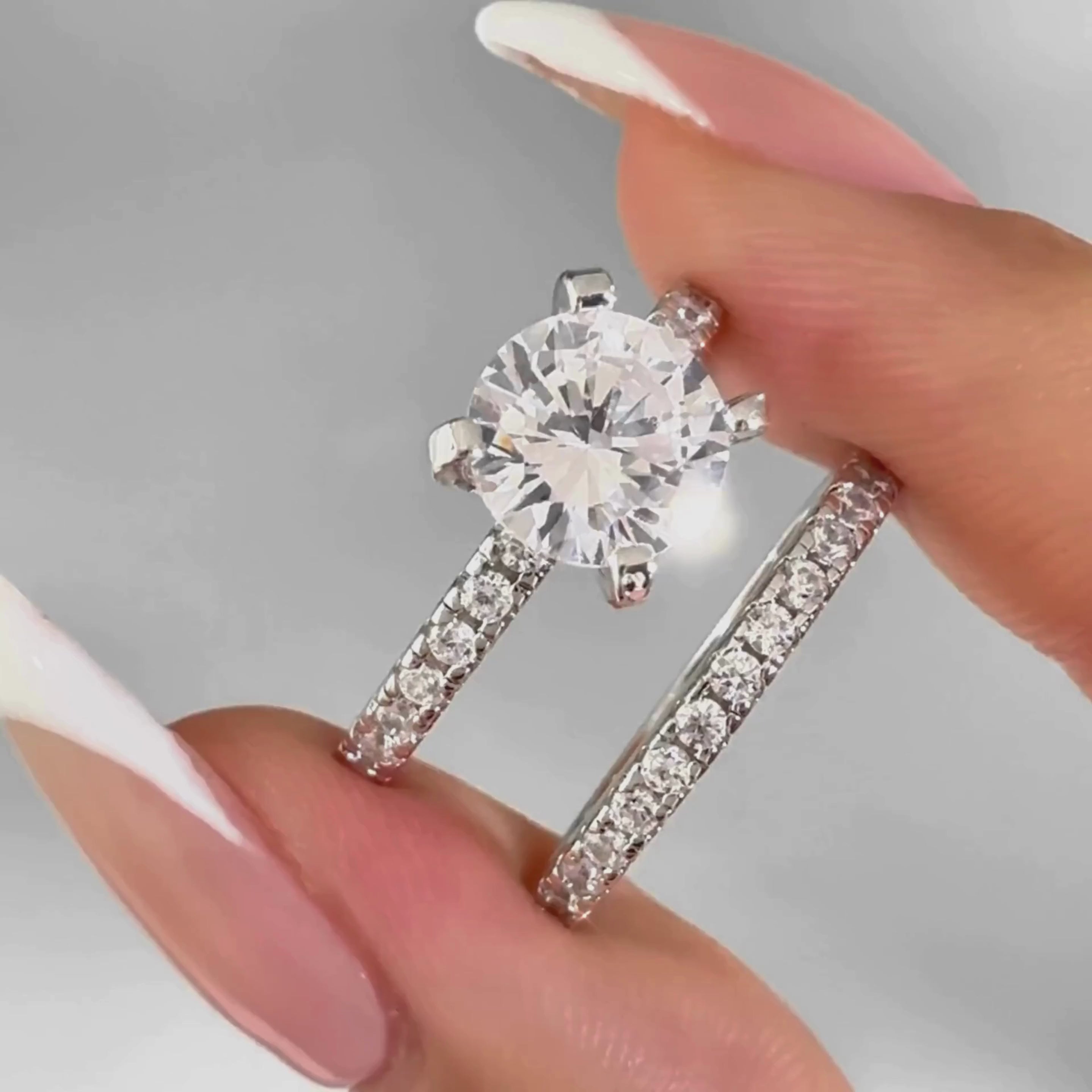 The Angel combines classic elegance with modern brilliance. Crafted from S925 sterling silver, this classic double pavé solitaire ring showcases round-cut simulated diamonds in prong and pavé channel settings. The Angel is also available in rose gold.