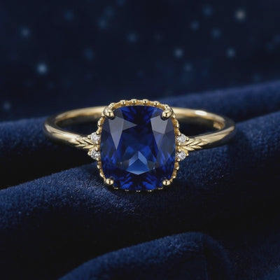 Mined sapphires are often clouded by inclusions or appear overly dark. This simulated sapphire ring is engineered to capture the ideal "Royal Blue" benchmark—a deep, velvety saturation that remains vibrant in any light. Precision-cut in a classic cushion shape, it delivers the exact visual profile of a museum-grade heirloom without the scarcity tax.