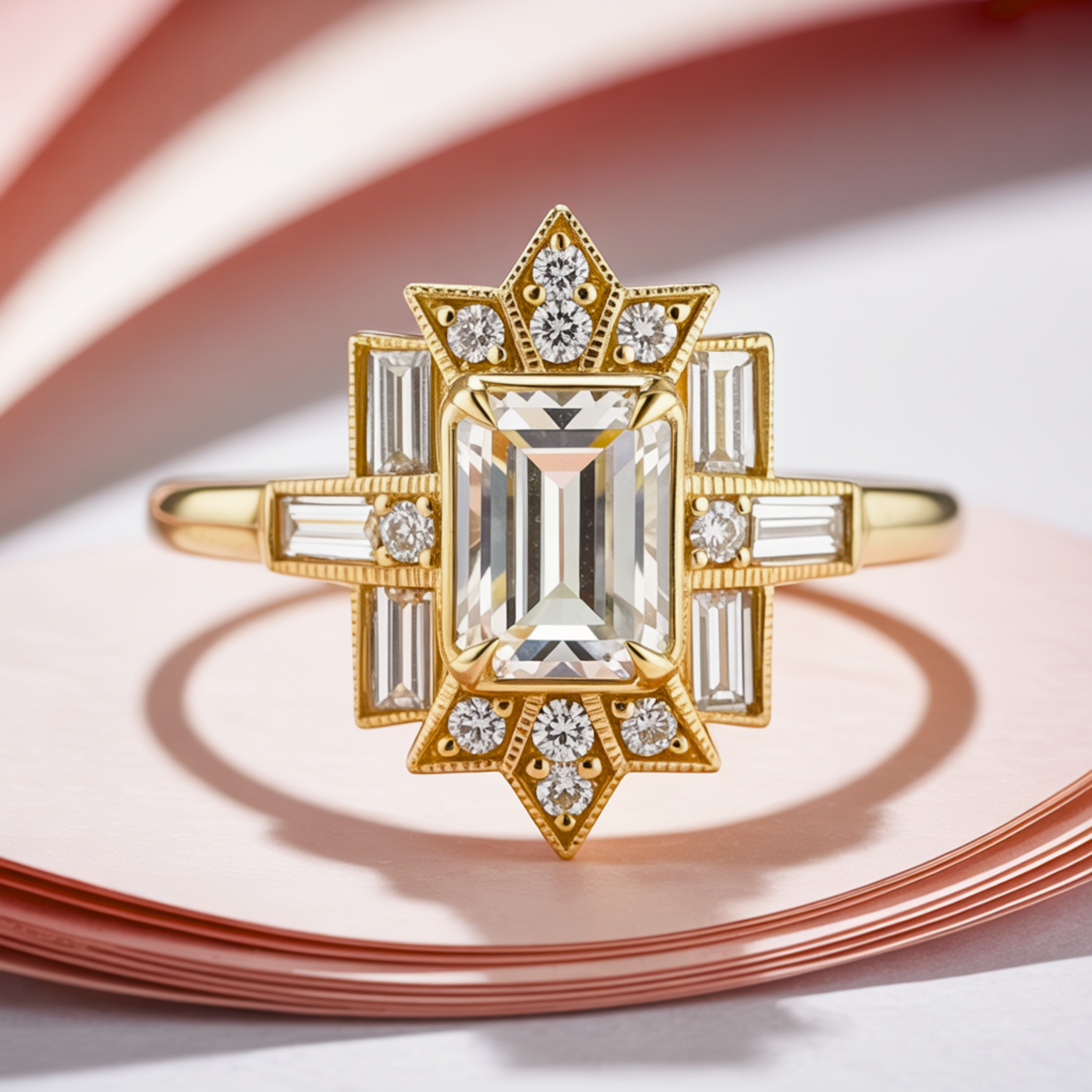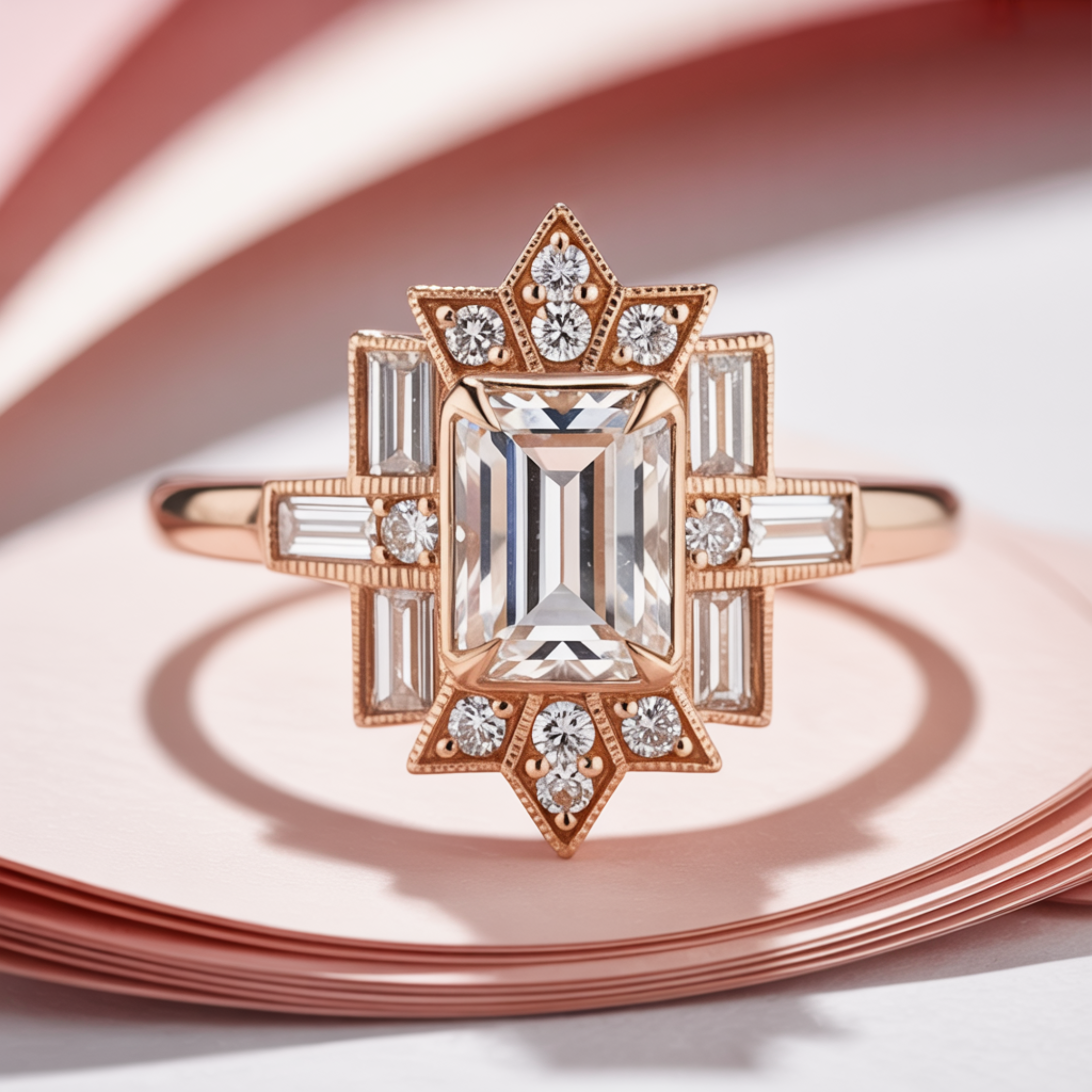 - Unique Art Deco Bezel Halo for a distinct vintage appeal.