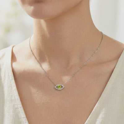 Mined peridot often lacks the fire and clarity required for high-end jewelry. This necklace features a center stone color-calibrated to the vibrant yellow-green of a museum-grade August birthstone. Engineered with a higher refractive index than diamond, our Moissanite provides superior dispersion and brilliance that nature rarely produces consistently.