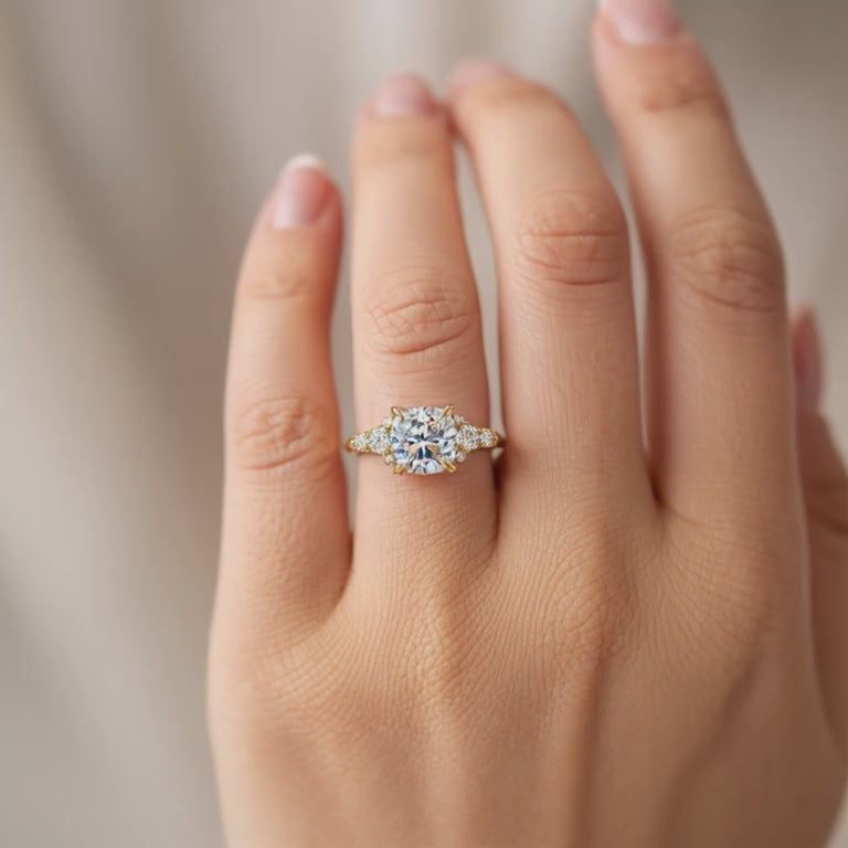 Meet The Bella Jewel - this ring enchants with its romantic cushion-cut moissanite centerpiece. The square silhouette with soft, rounded corners creates a vintage-inspired look that's both timeless and romantic. This classic antique cut delivers exceptional fire with a pillow-like appearance that exudes old-world charm and modern brilliance.