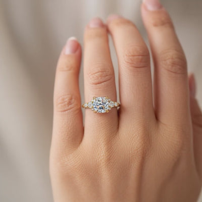 Our rings feature individually handcrafted settings with premium moissanite gemstones - a stunning, sustainable alternative to mined diamonds. Each stone comes with certification, ensuring you receive exactly the quality promised.
