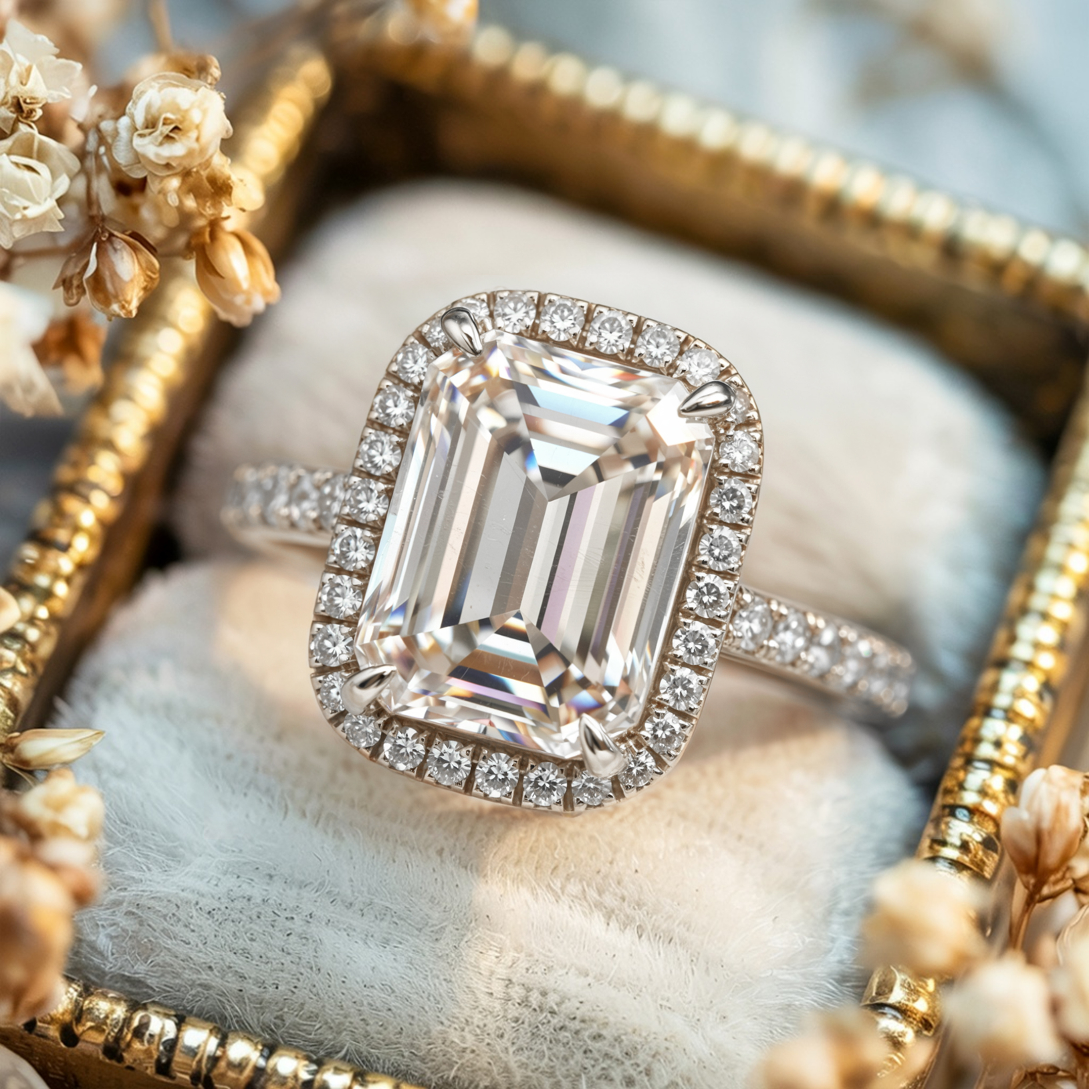 - Stunning 3CT emerald-cut flawless moissanite gemstone