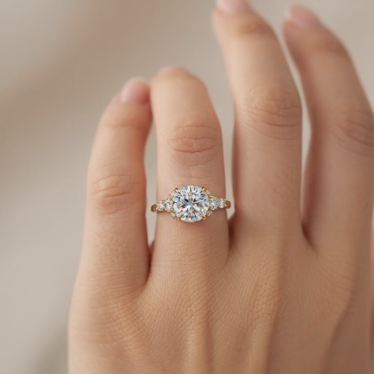 Meet The Bella Jewel - this ring dazzles with its brilliant round-cut moissanite centerpiece. The classic round cut is renowned for its superior light performance, delivering maximum fire and brilliance that outshines even the finest diamonds. This timeless shape offers unmatched sparkle and universal appeal.