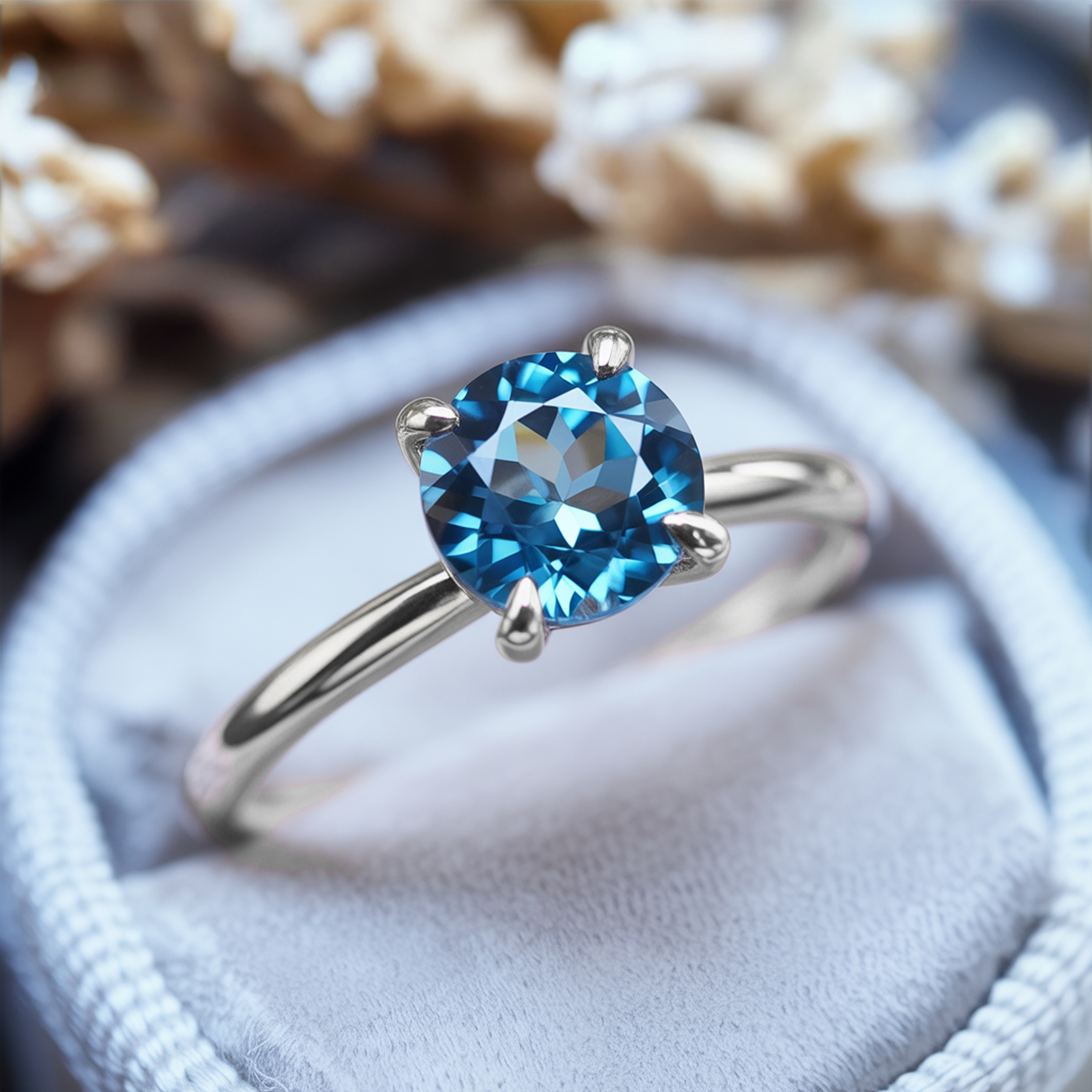 The Bethany 1.5CT Round Cut Blue Moissanite Solitaire Ring