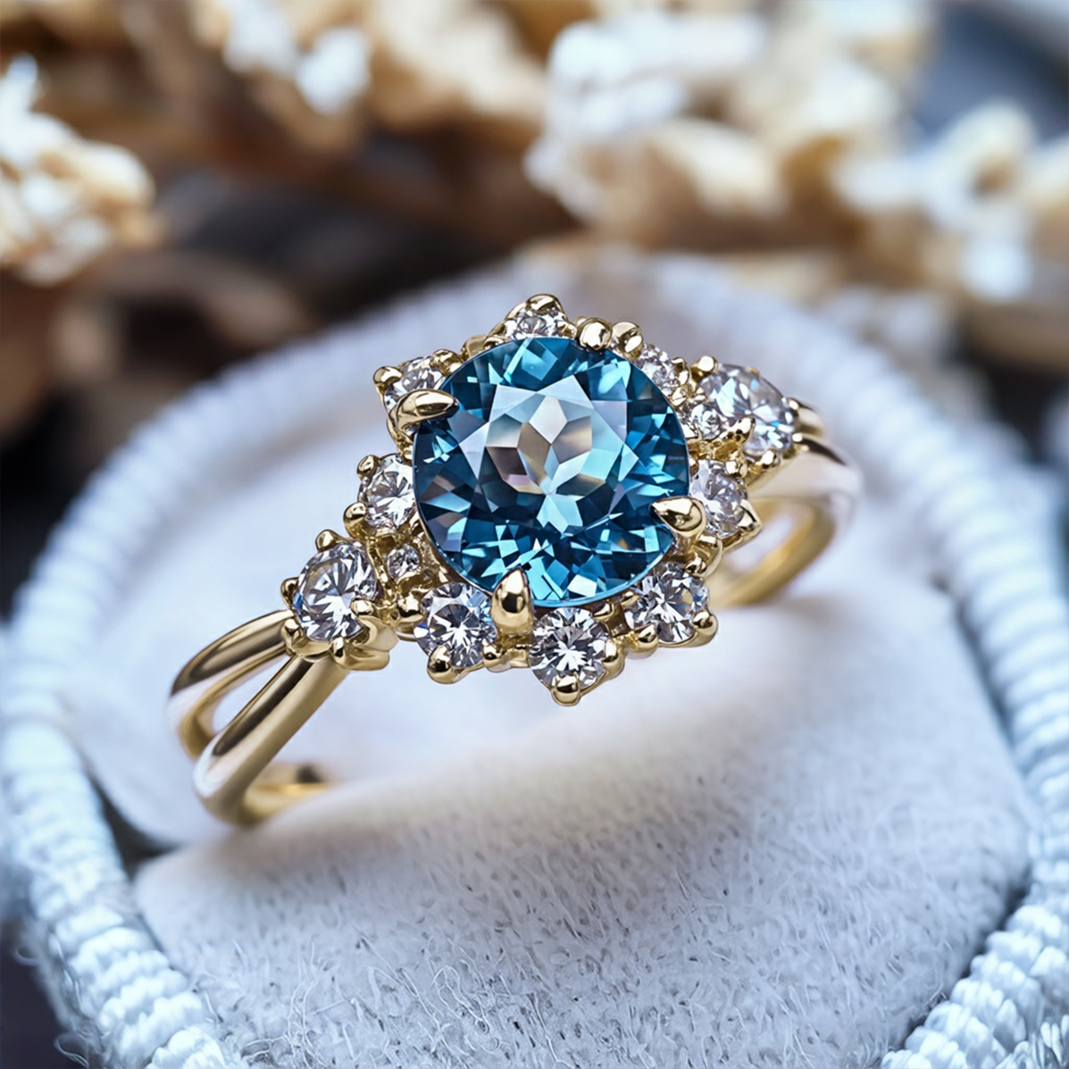 The Bethany 1.5CT Round Cut Blue Moissanite Split Shank Ring