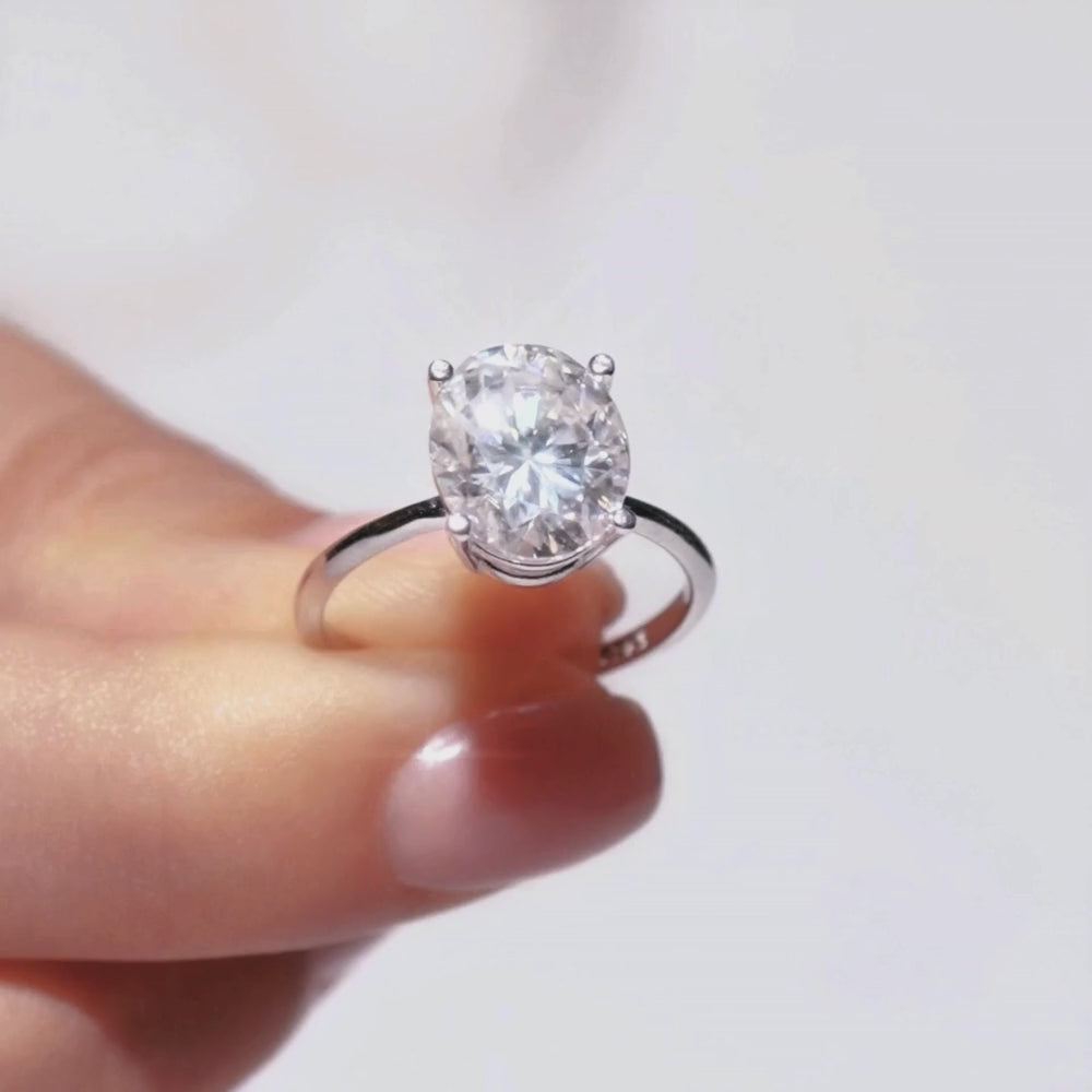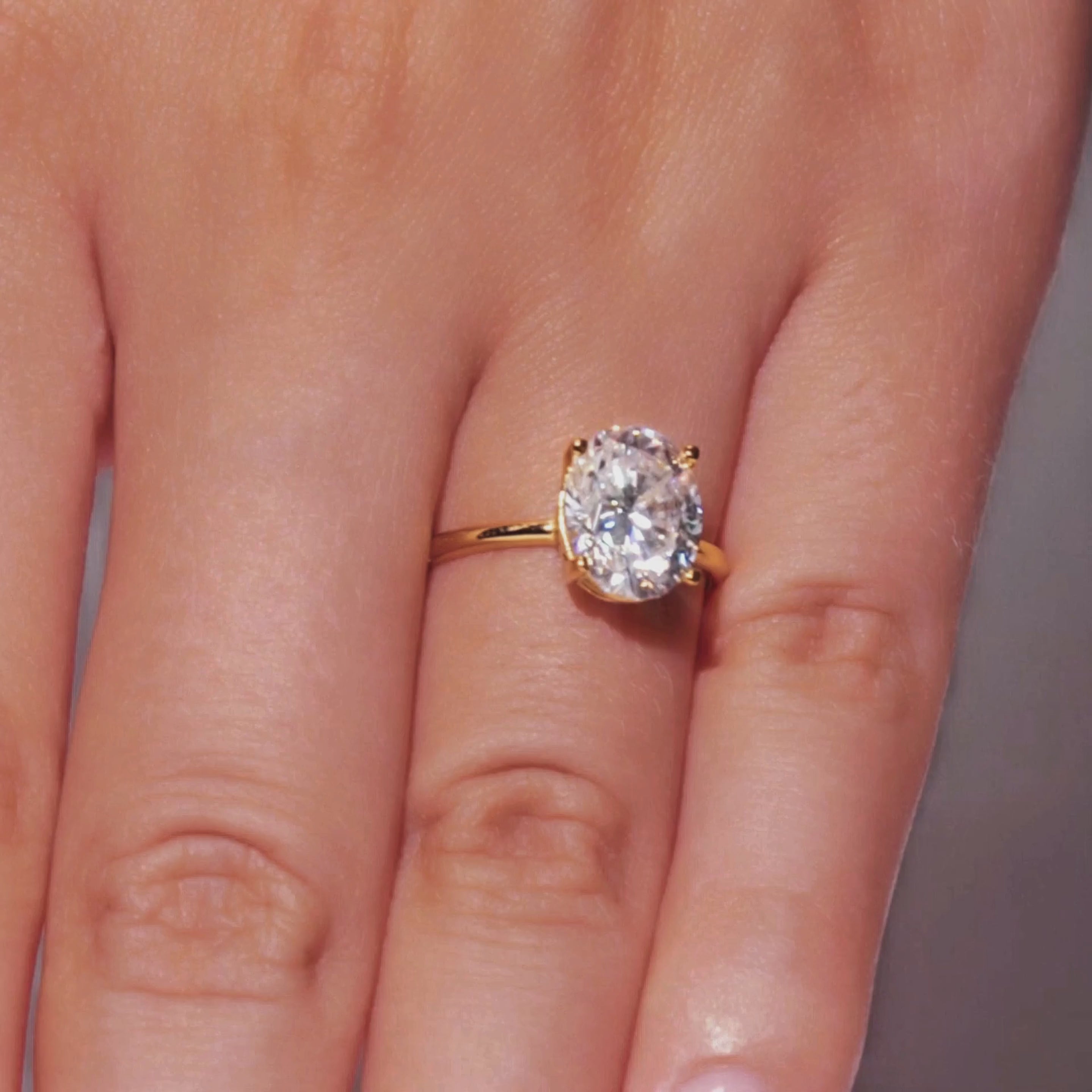 The Bliss brings together simplicity and luxury. Crafted from 18K Gold Vermeil over S925 Sterling Silver, this ring showcases a beautiful oval-cut moissanite stone in a secure prong setting. Choose from 1-5CT stone size based on your preference.