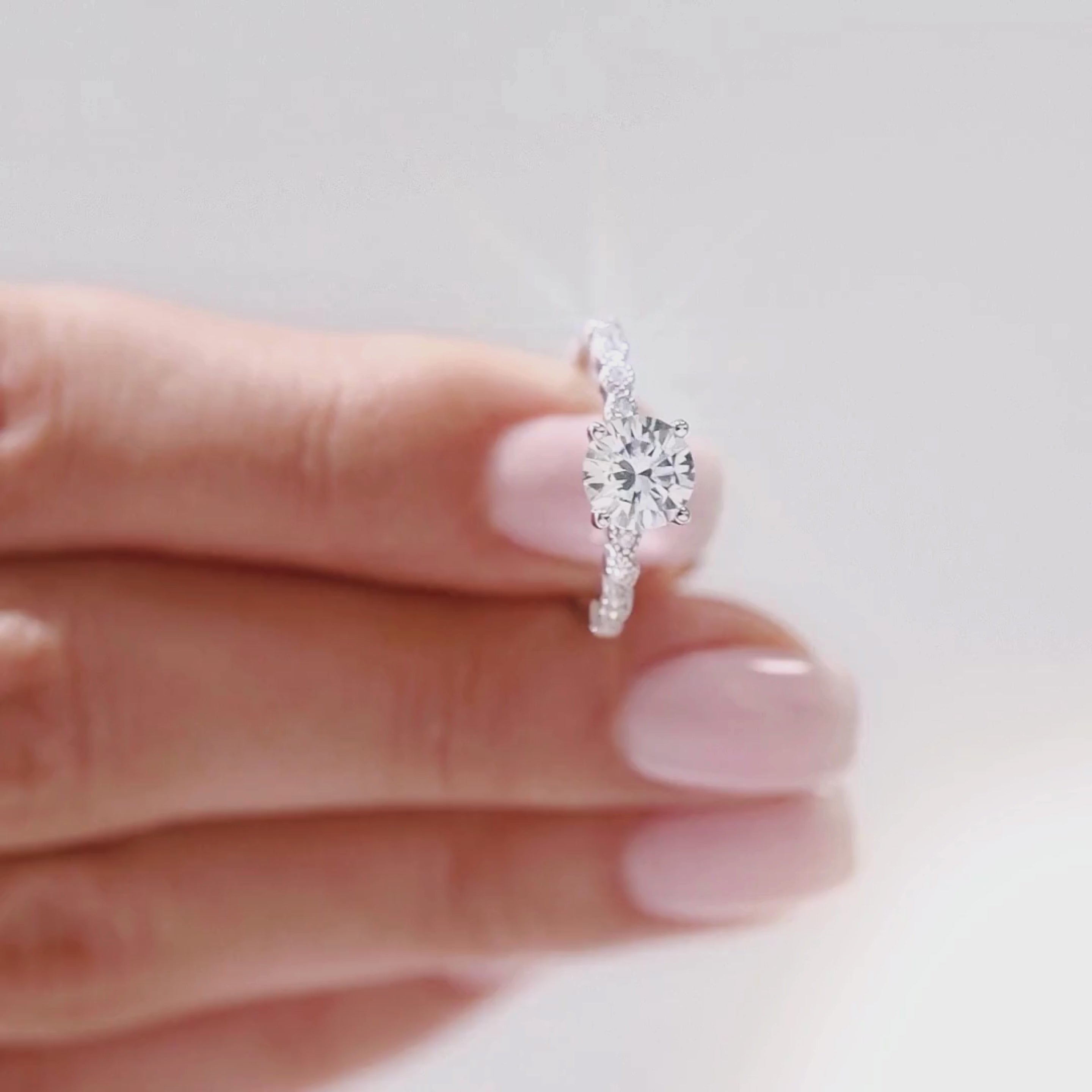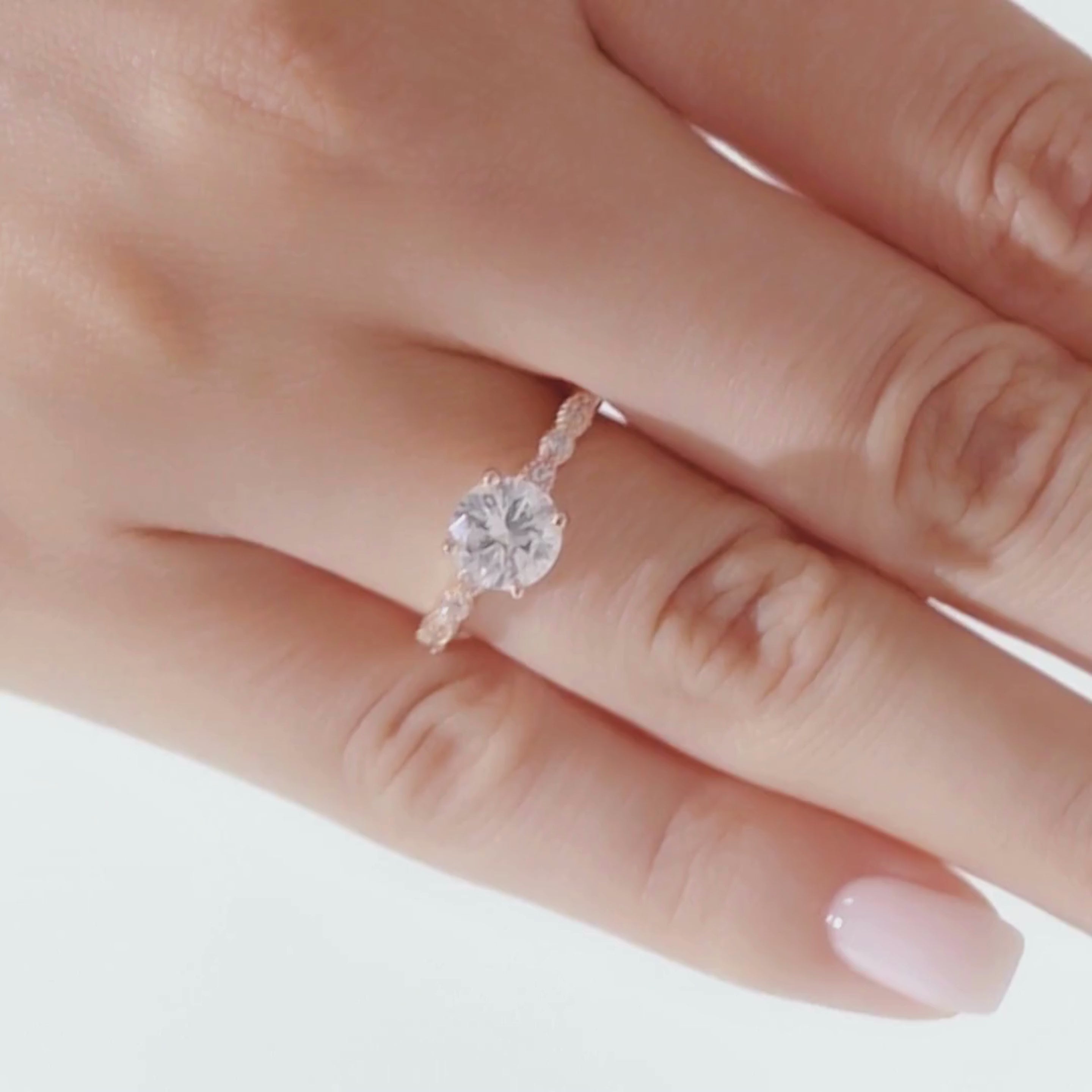 The Brilliant-Rose radiates classic elegance with its half-eternity solitaire design. Made from S925 sterling silver, it features a round-cut lab grown diamond in a prong setting, complemented by high-grade accent stones for a shimmering effect.