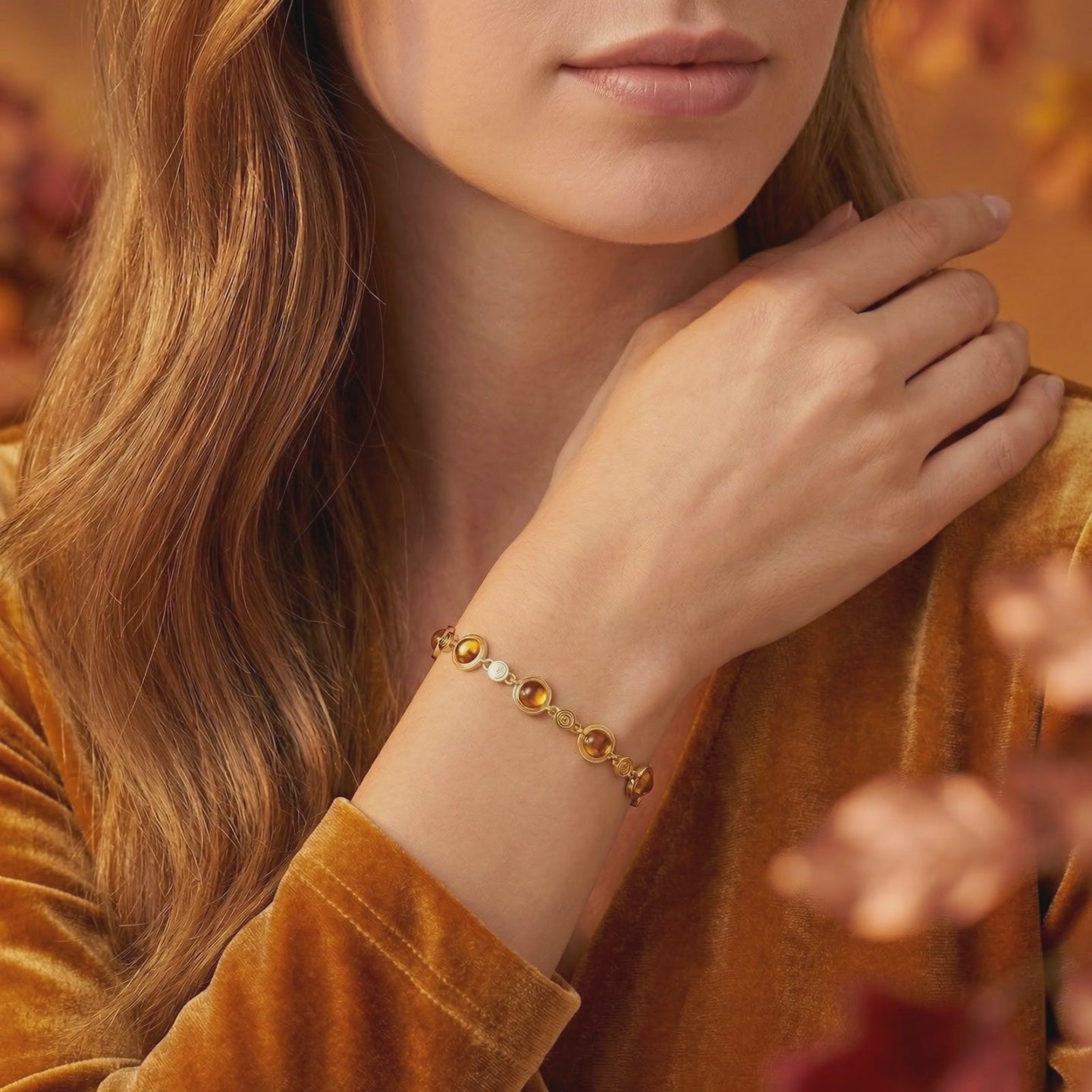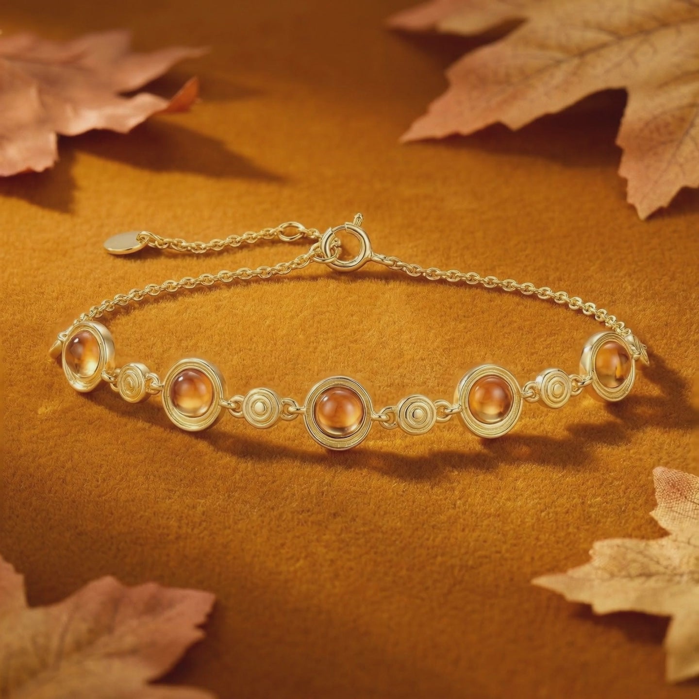Nature rarely delivers the deep, honeyed warmth sought in a perfect November birthstone. We engineered it. This bracelet features precision-cut Simulated Topaz, color-calibrated to match the most coveted golden-orange hues found in museum-grade specimens. Each stone is faceted for maximum light return, ensuring a consistent glow that doesn't fade or cloud over time.