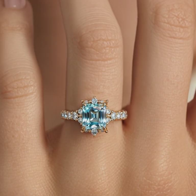 The Caterina 1CT Asscher Cut Blue Moissanite Ring