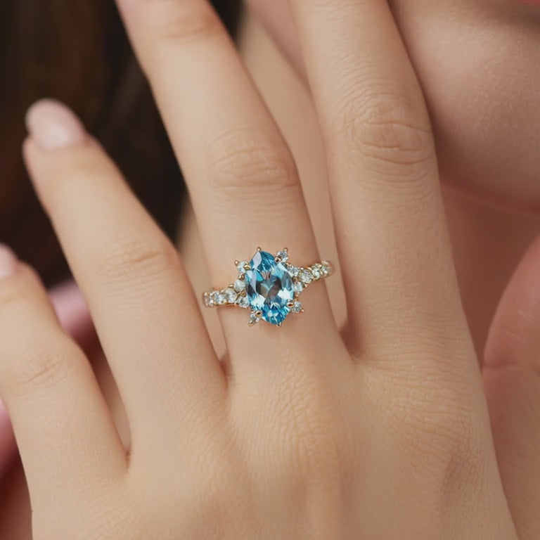 The Caterina 1CT Marquise Cut Blue Moissanite Ring
