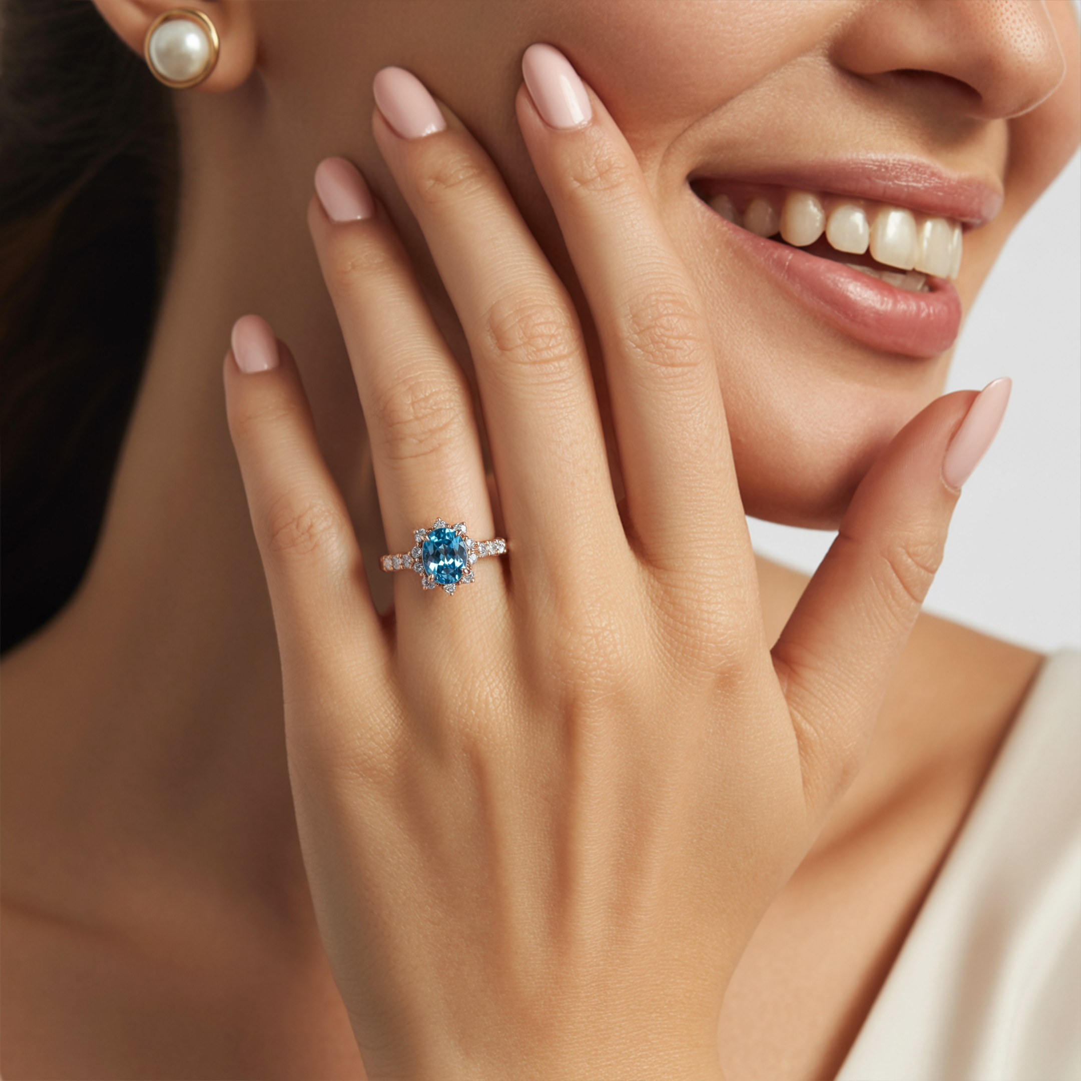 The Caterina 1CT Oval Cut Blue Moissanite Ring