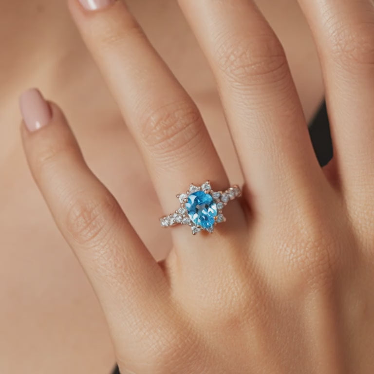 The Caterina 1CT Pear Cut Blue Moissanite Ring