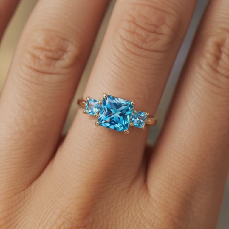 The Caterina 1CT Princess Cut Blue Moissanite Ring: 2.5x More Sparkle Than Diamonds. 90% Less Cost.