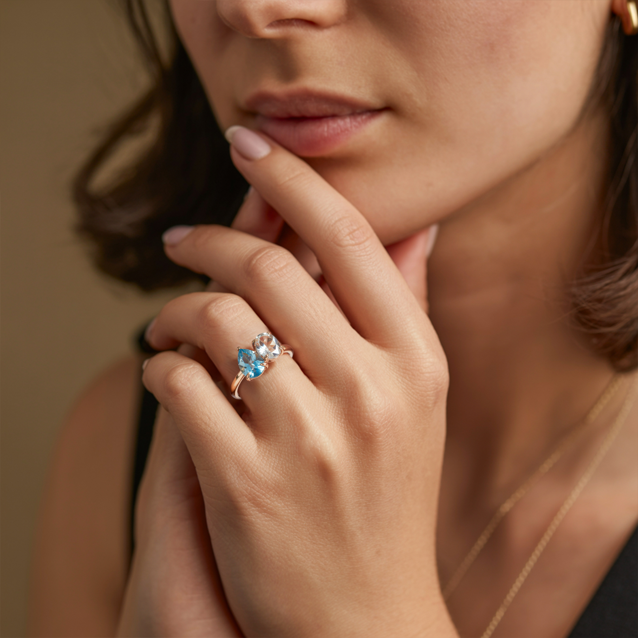 - The bypass band gracefully curves to showcase both stones in perfect harmony