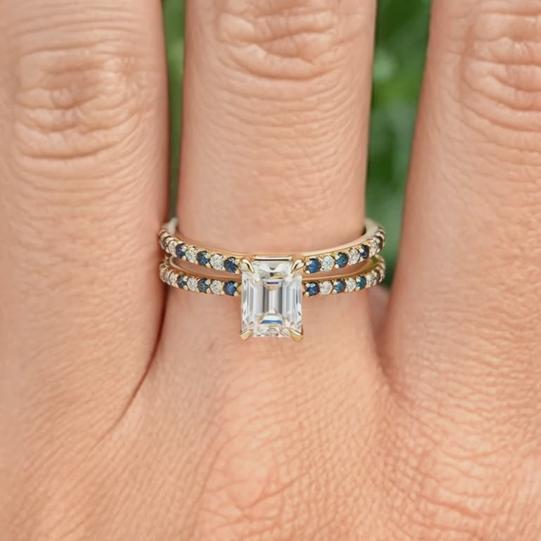 - Exceptional brilliance from the 1CT emerald cut moissanite center stone.