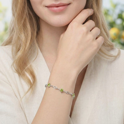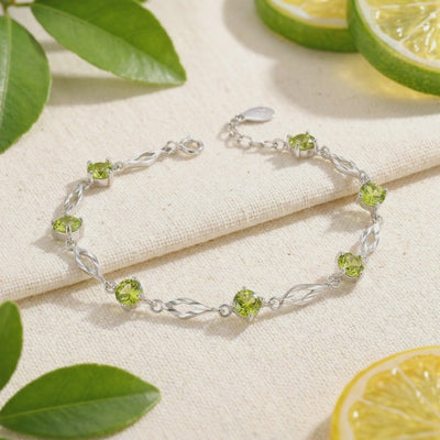 Mined peridot is often plagued by cloudiness and inconsistent yellow-brown undertones. This bracelet features Simulated Peridot, engineered to achieve the absolute ideal: a vibrant yellow-green with lively brilliance and museum-grade clarity. Each stone is precision-cut to ensure maximum light return and color uniformity across the entire piece.