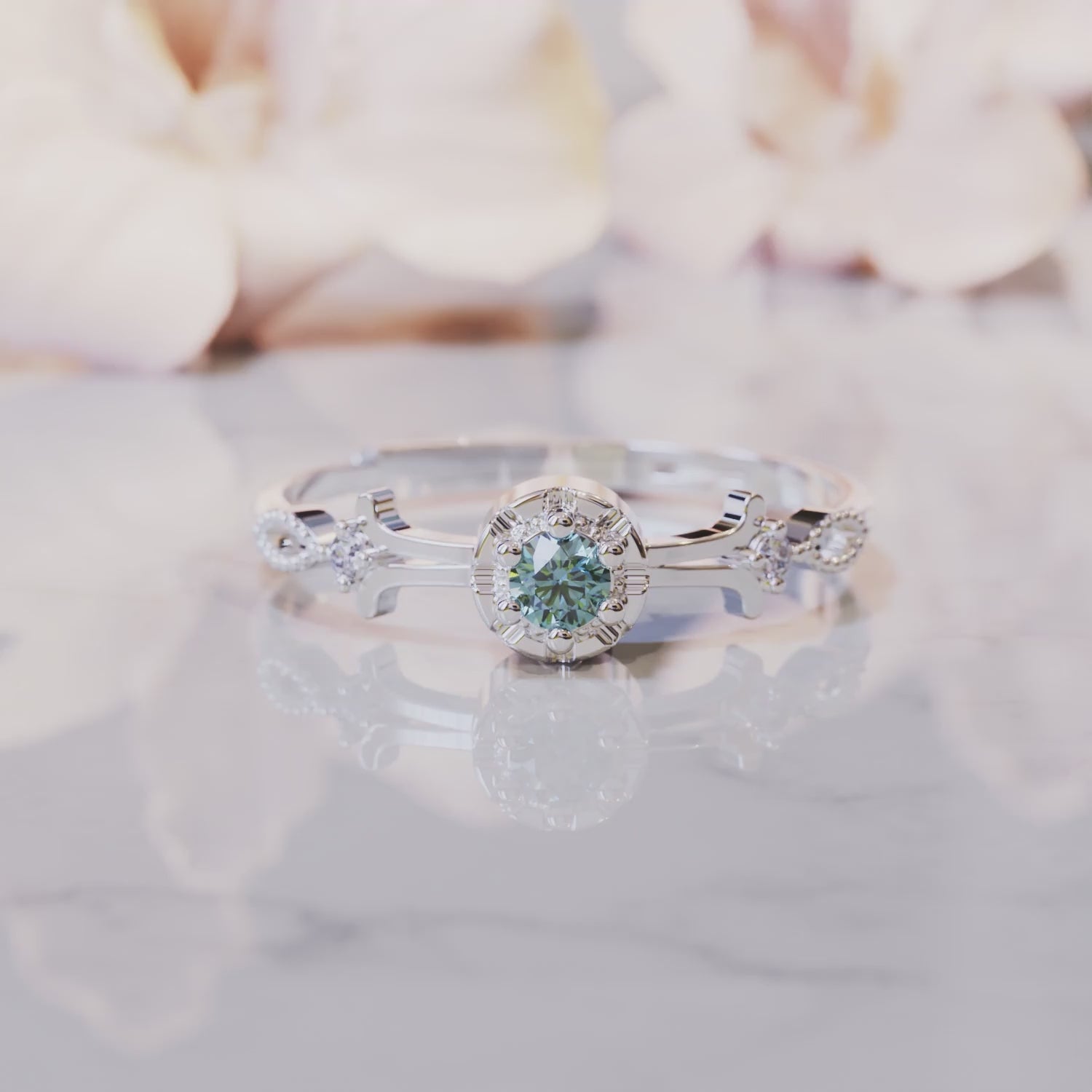 At the heart of this beautiful piece is a 0.1-carat round-cut Alexandrite, a gemstone renowned for its magical color-changing properties. The Claudia shifts from a rich purple under soft light to a vibrant green in daylight, offering a mesmerizing, ever-changing display of color.