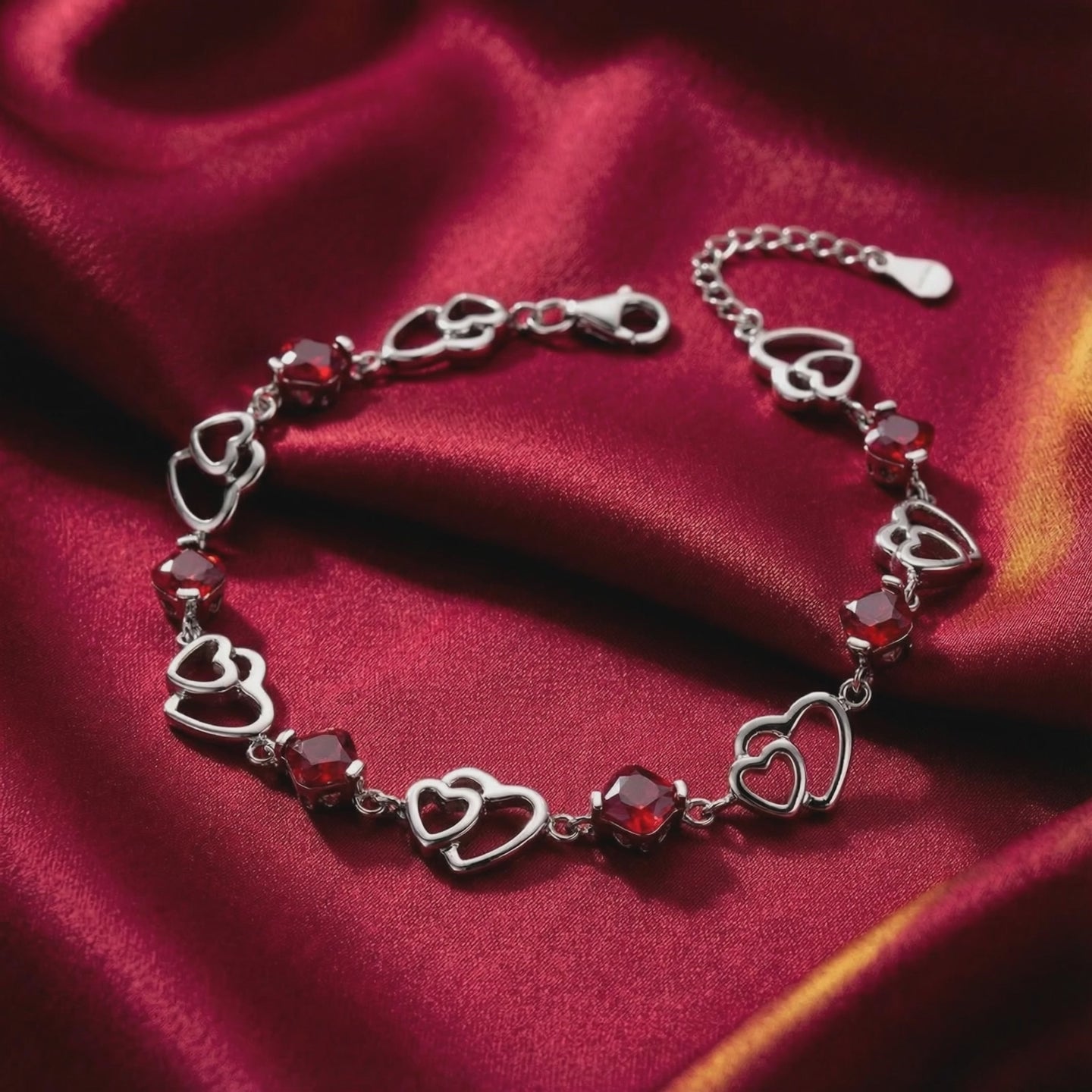Nature rarely produces rubies with this level of clarity and deep saturation. We engineered the standard instead. This heart bracelet features precision-cut Simulated Rubies, color-calibrated to the iconic "Pigeon Blood" red benchmark. Every stone is calibrated for uniformity, ensuring no dull or cloudy inclusions ruin the visual fire of the piece.